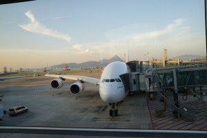 抵達杜拜機場後發現竟然不是走空橋