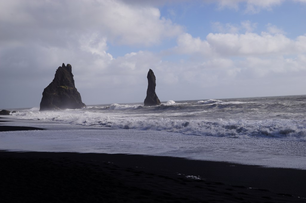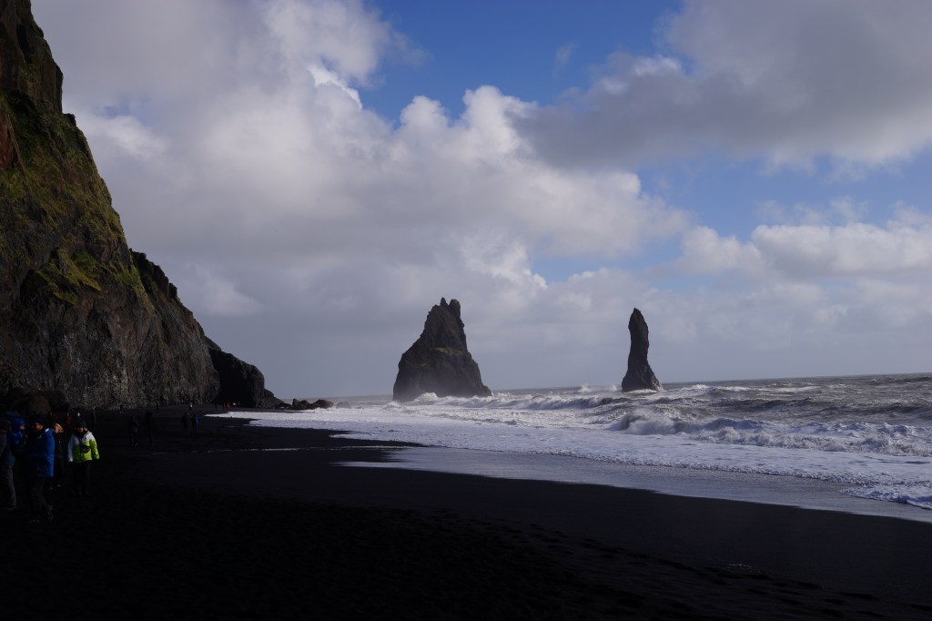 黑沙灘除了有黑色火山岩礫外,最著名的是壯觀的玄武岩峭壁與玄武岩洞穴,由於此處的海浪非常之大,而且黑沙灘不會像白沙灘有水痕,看不出來浪的大小,常有新聞報導大家在這拍照時沒注意到浪而被捲走的事件,海灘入口處也有牌子警告危險,雖然這邊很漂亮,但拍照之餘還是要小心。