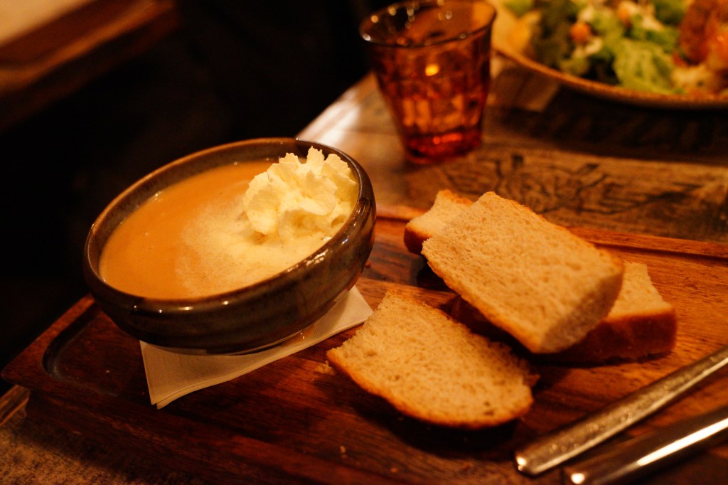 再來,我點了龍蝦湯,不過我看之前別人的奶油是另外裝的,不知道為什麼我的是直接在湯裡了…?但沒關係,好吃比較重要對吧!!