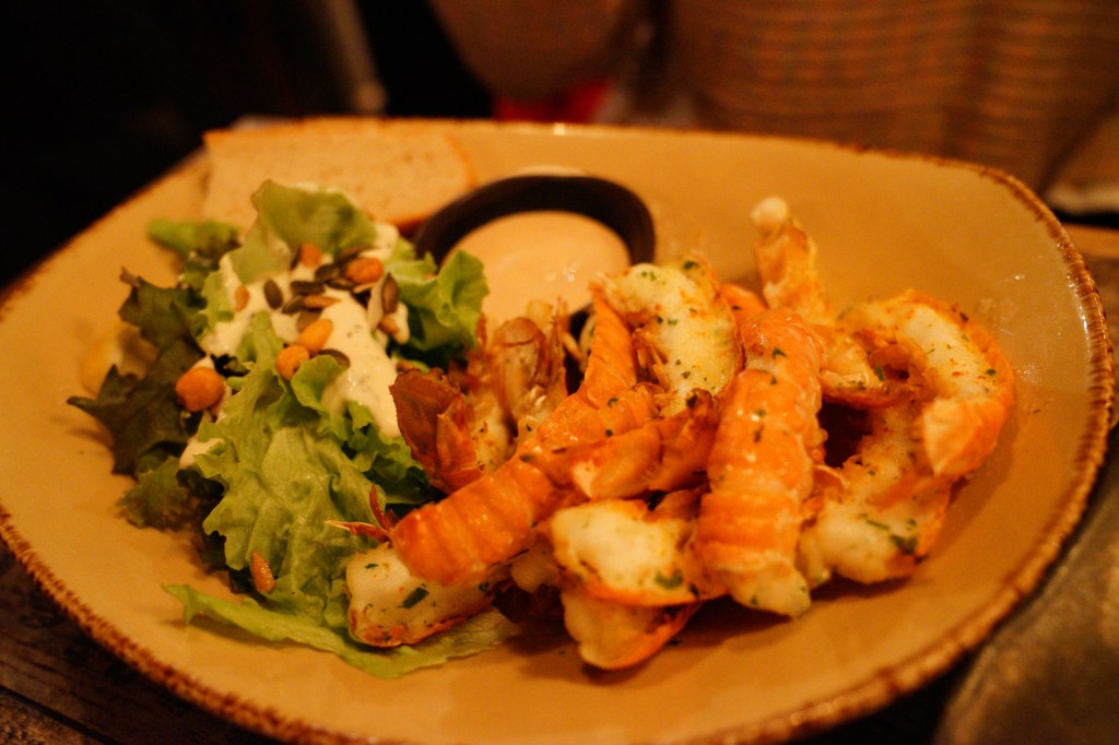 友人點了有名的蒜蓉小龍蝦,冰島的龍蝦不像台灣的會有QQ彈牙感,這裡的比較口感比較"粉"一點,吃了一隻之後覺得跟想像中有點不一樣…..