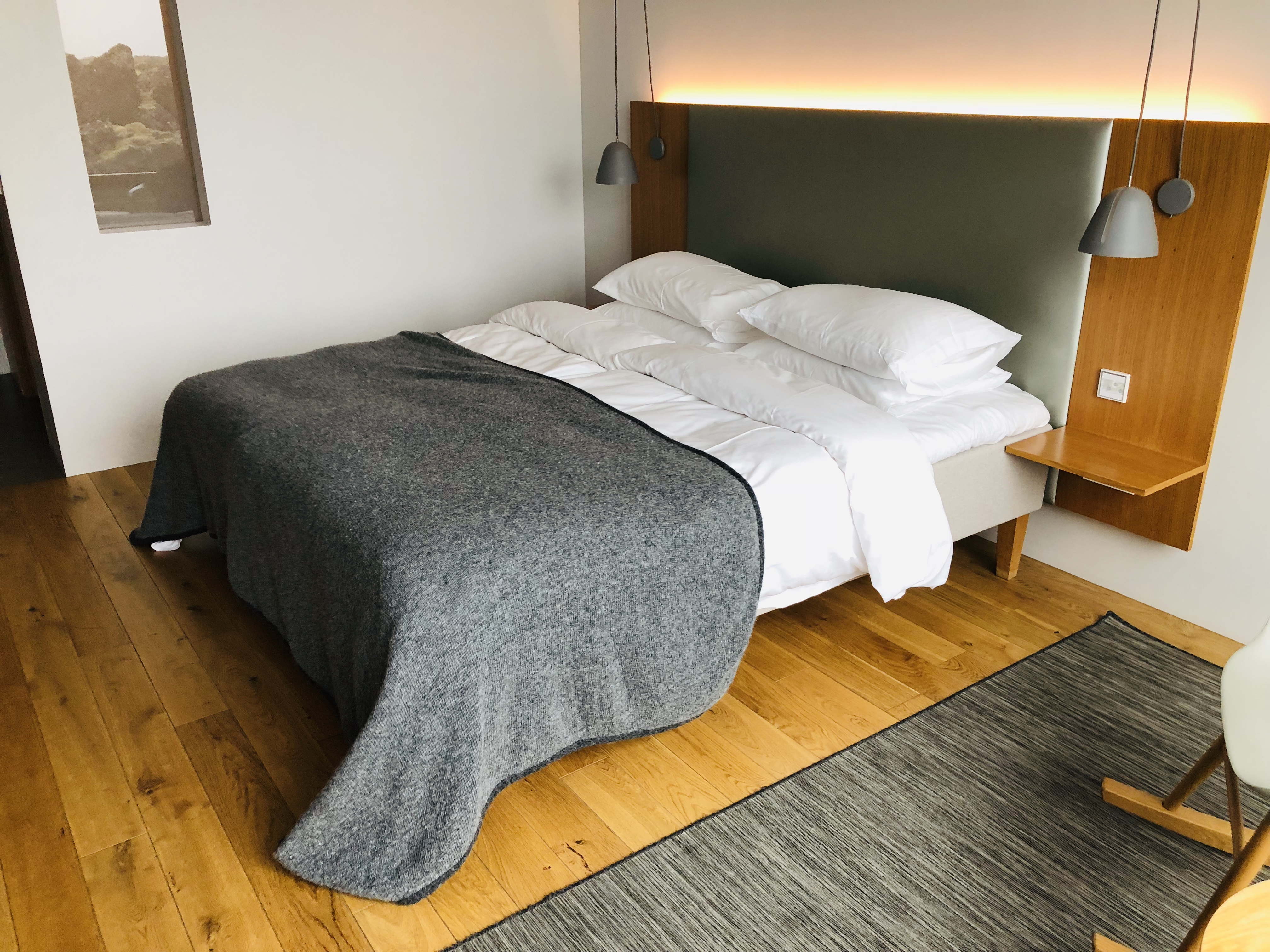 對於這間飯店我個人的評價是可以去住過一次,但嘗試過一次應該就差不多了。因為溫泉跟台灣的真的差很多,包括水溫和整體的乾淨程度,只是溫泉的造景和整體氛圍感覺很美,房間的設備其實也沒有說好到讓你難忘,就是該有的都有,比較特別的是有附夾腳拖,但我個人認為附贈的夾腳拖並不好穿,我寧願他給我一般的布拖鞋….房間外的陽台也可以看到冰島苔和藍湖,如果能直接從房間下去泡會更好,可惜房間外的溫泉水是冷的,也不能下去。