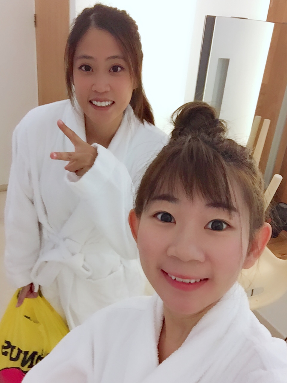 進來剛好裡面都沒人,裡面有些椅子和一些沐浴護髮護膚備品,還有吹風機,不過後來我是都沒有用啦,因為泡完出來實在是太冷了,披上浴袍後用吹風機吹了一下就立刻回房間了。