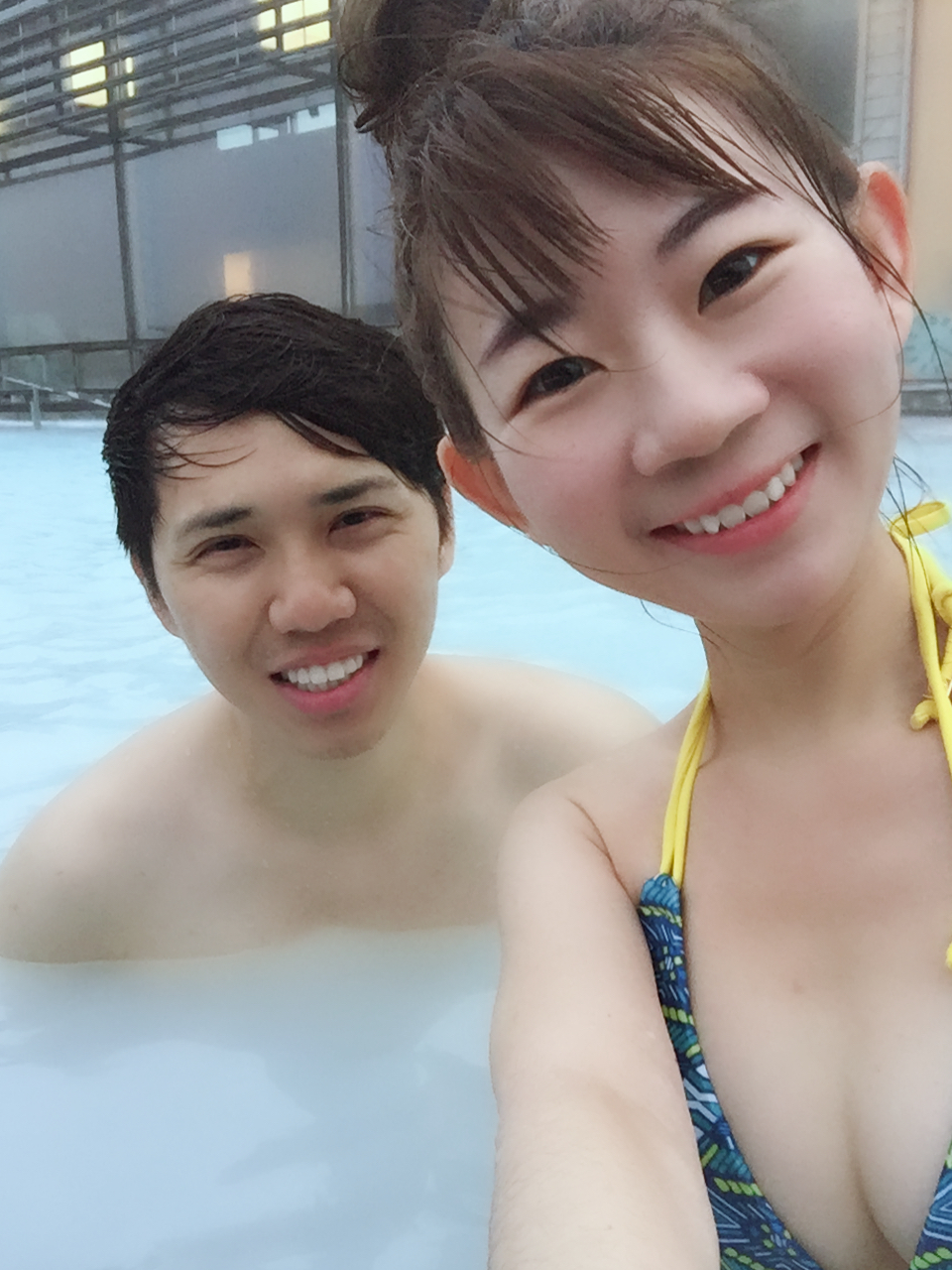 回房放好行李後,我們就換裝前往飯店裡的溫泉泡湯。其實也是可以走到藍湖的大眾池,不過外面天氣很冷,又飄著細雨,真的是不想走那麼一段,飯店裡的藍湖人也沒有很多,還是待在飯店裡就好。