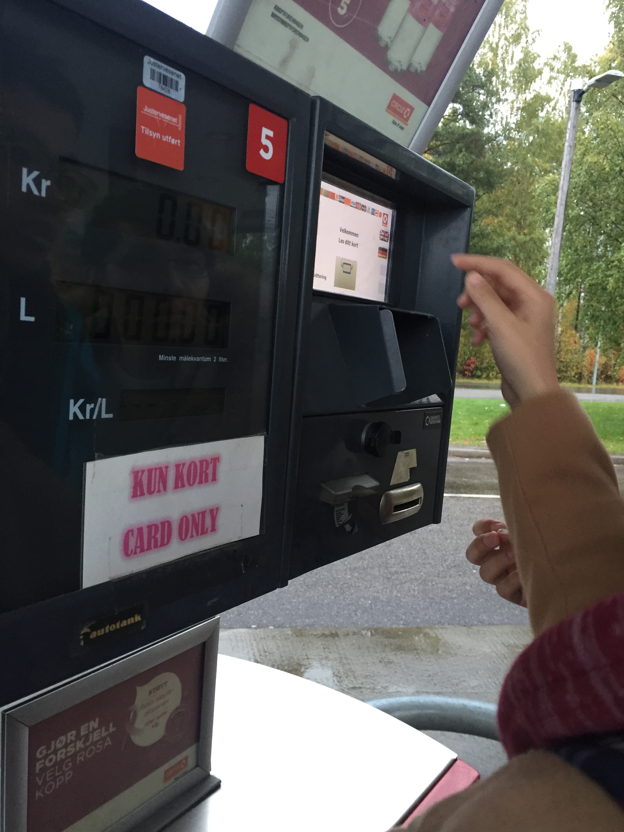 挪威加油或是停車都需要打pin碼,也就是預借現金的密碼,剛好我在申請信用卡的時候他們也有一併提供給我密碼,因此我才可以使用。所以來挪威記得一定要申請「預借現金」的密碼,以供停車或加油使用。一般商店刷卡則不需要用到pin碼。