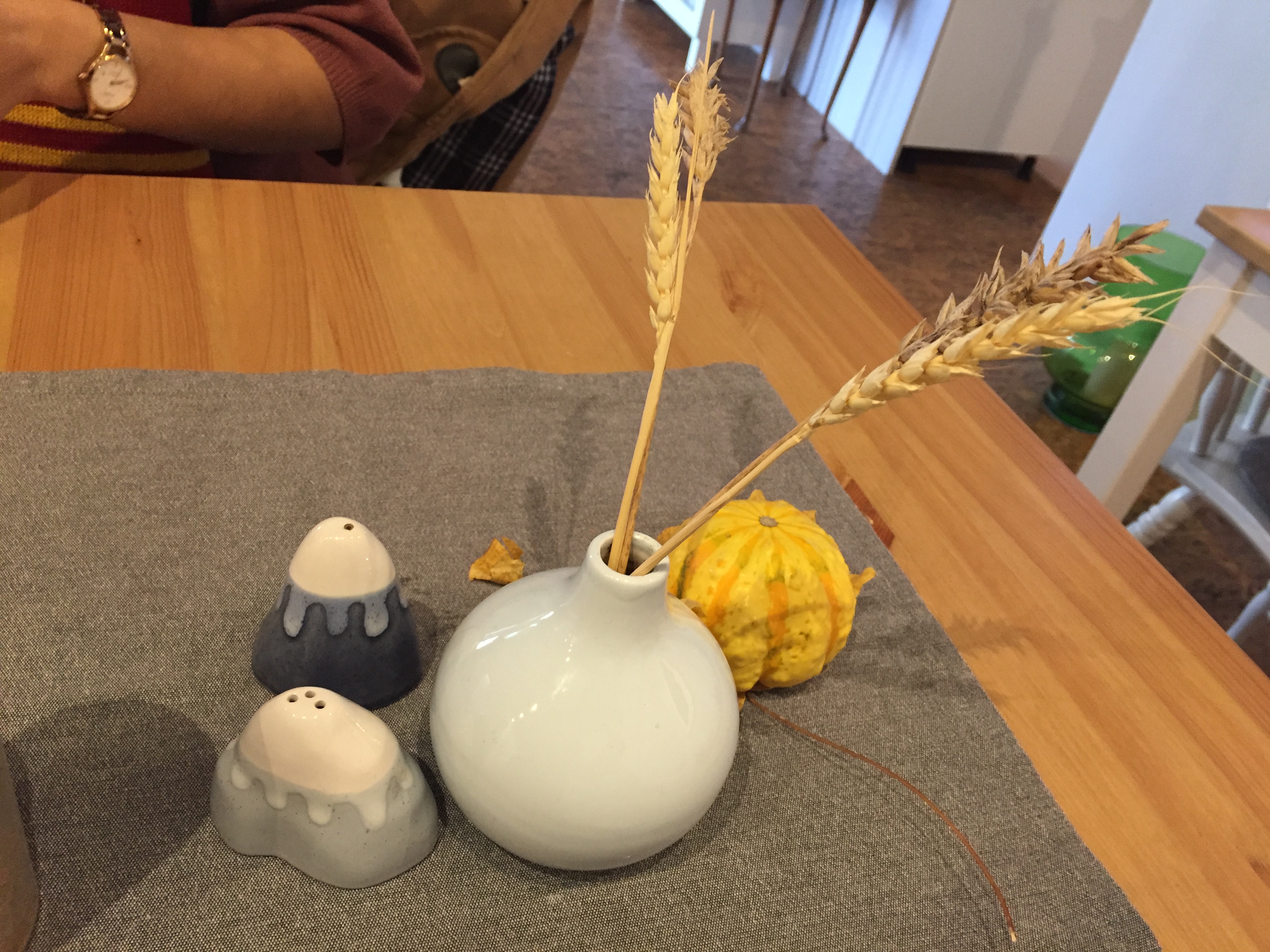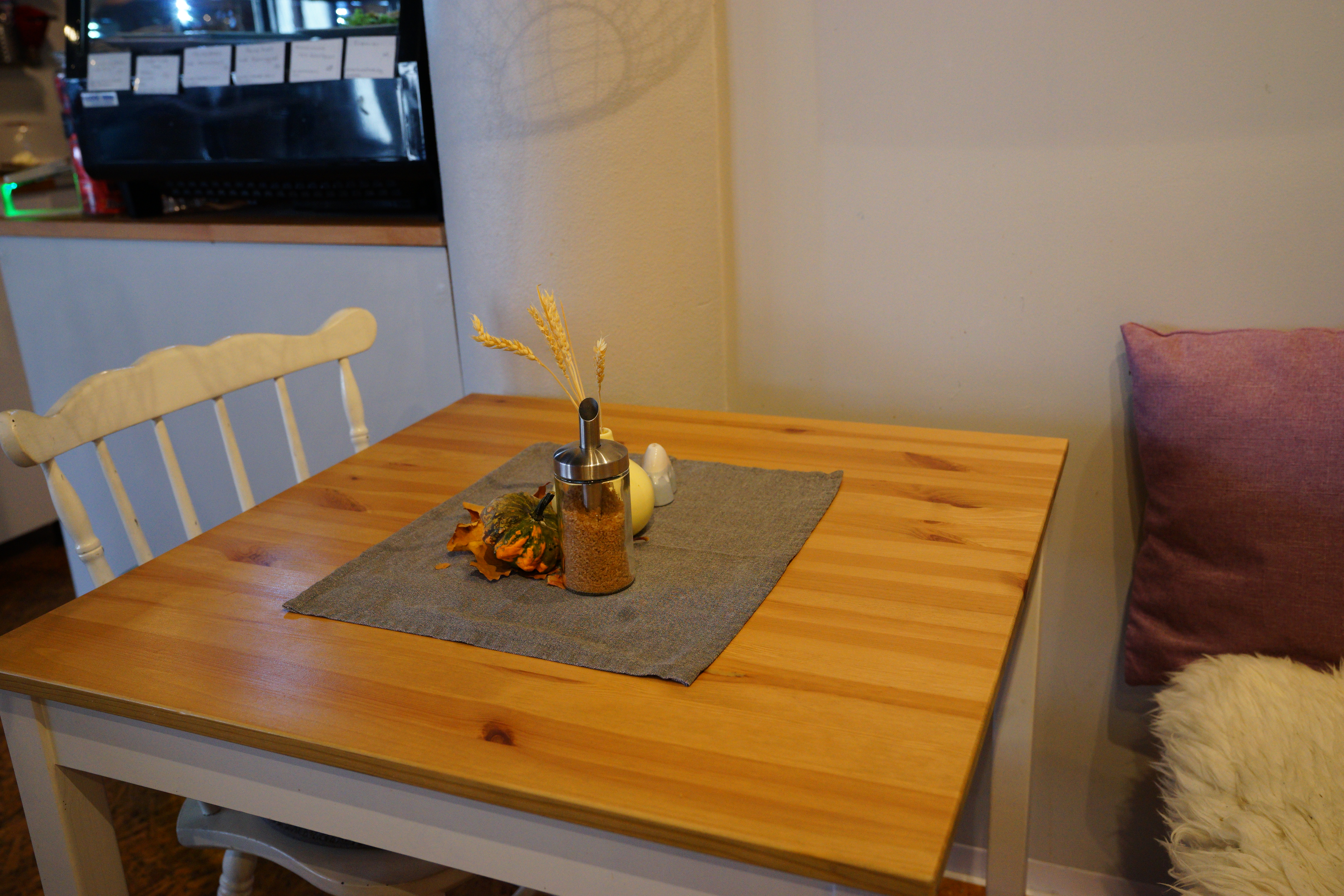 外面的椅子也都有墊上毛毯和抱枕,桌上還有各種花,接近傍晚的時候,外面的位置還會放毯子讓人家使用。