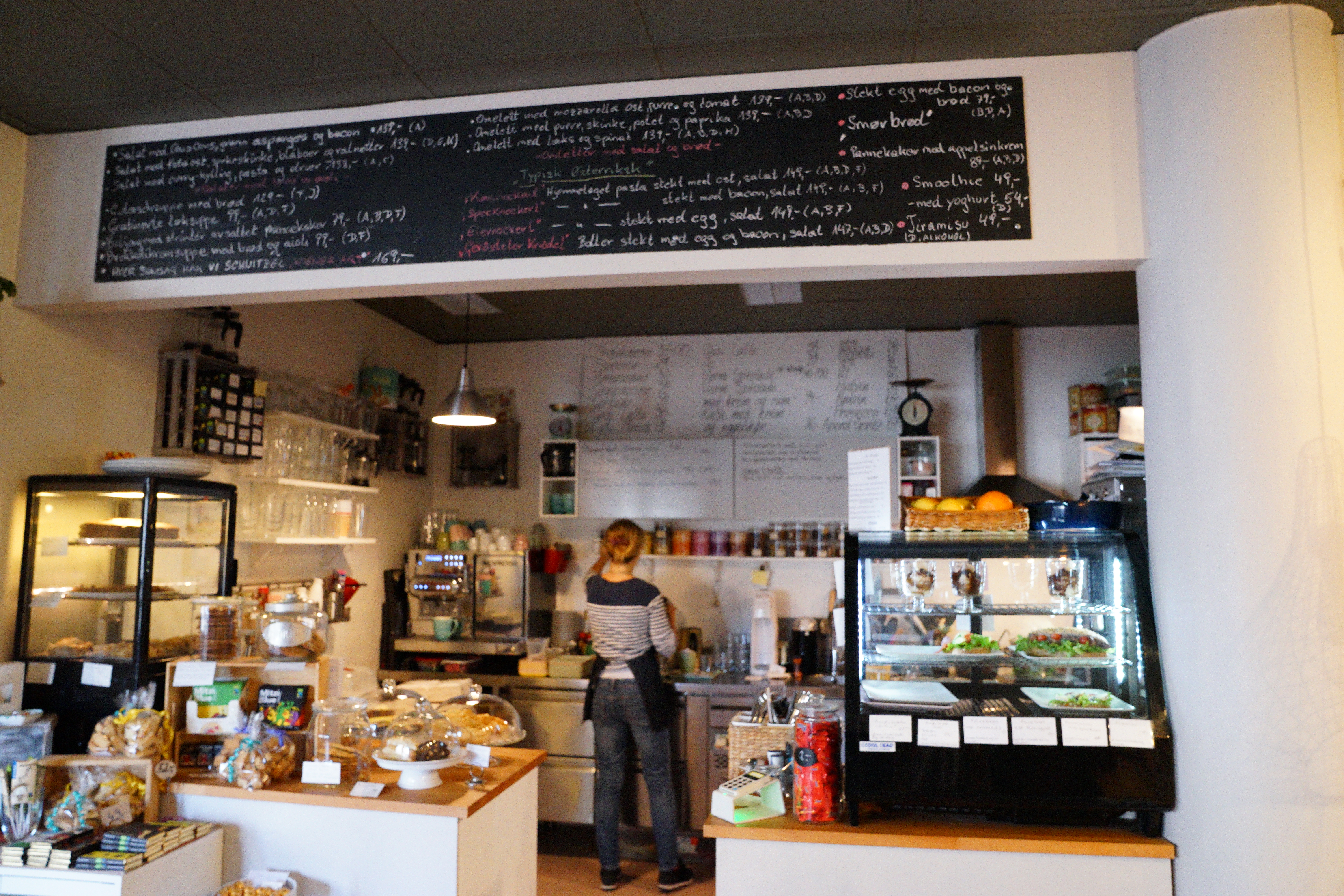 櫃台很小,上面密密麻麻的菜單,不過都是挪威文,向櫃檯小姐詢問可得到英文Menu,不過就算變成英文了還是看不懂😂只能拿出手機查單字哈哈哈