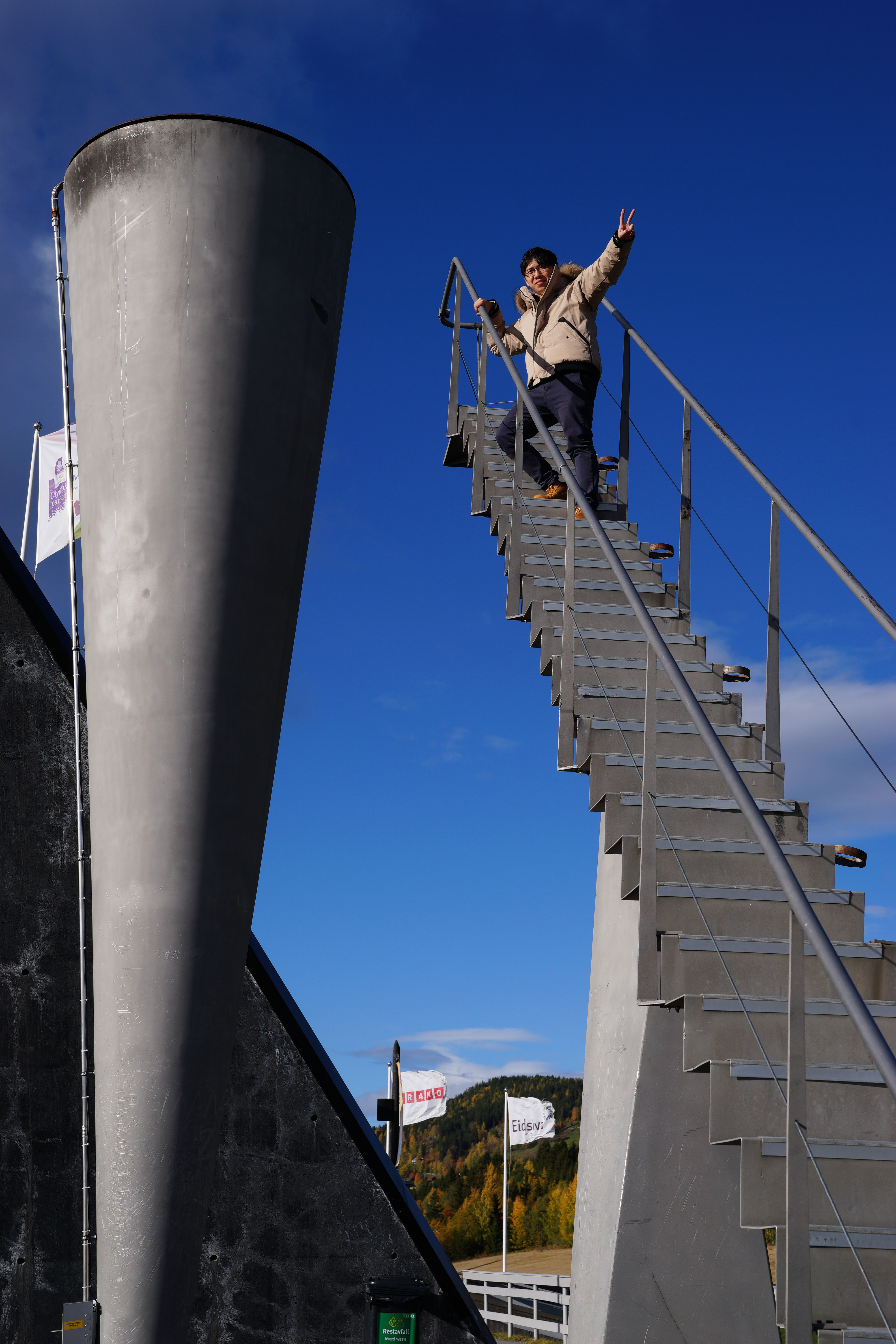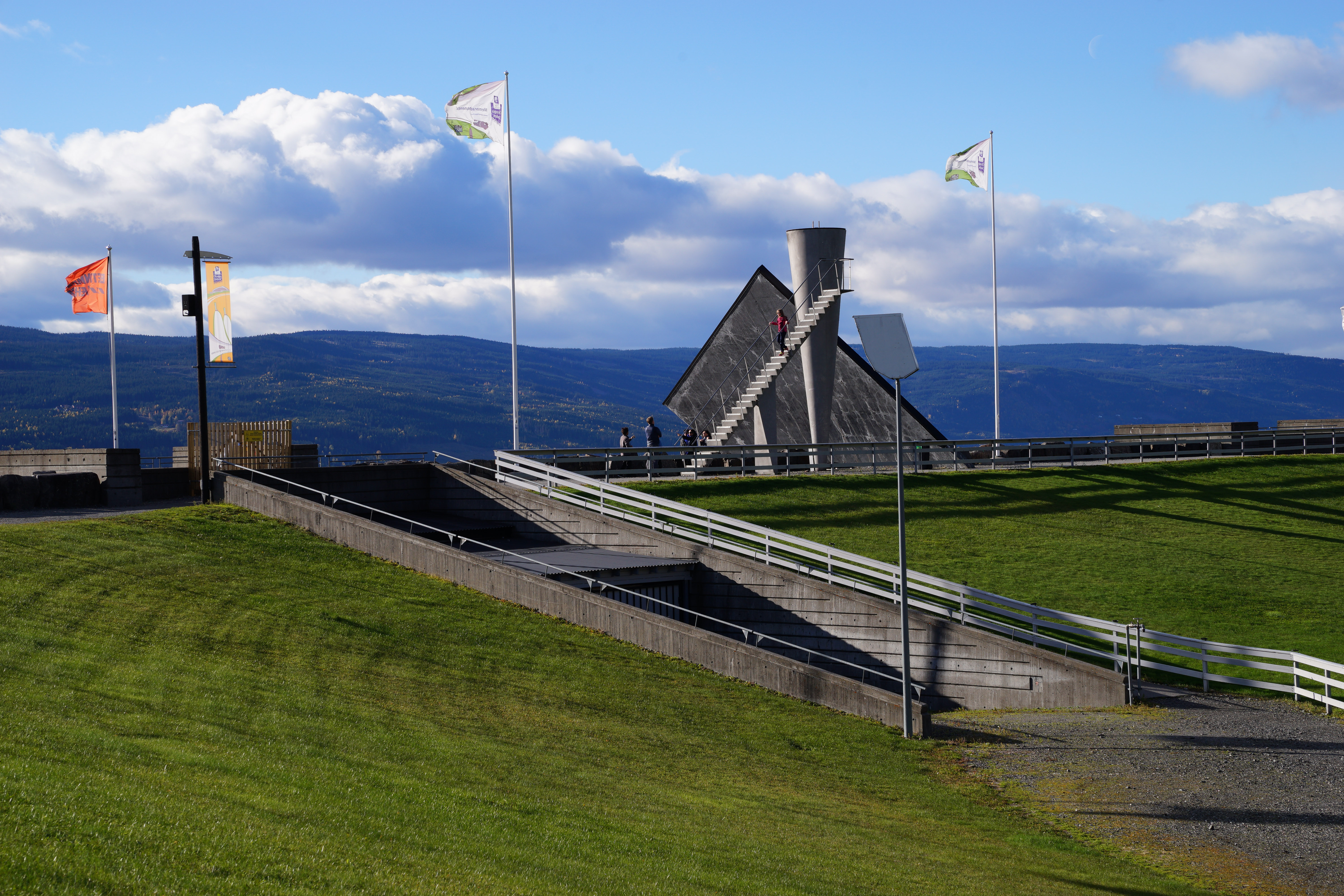 在市區吃完午餐後,決定前往之前的奧運場地來看滑雪跳台。原本是想去另一個麥豪根民俗露天博物館參觀,但參觀需要門票,而且距離當天結束營業的時間只剩一個小時,最後還是決定去這個跳台來看看就好。
