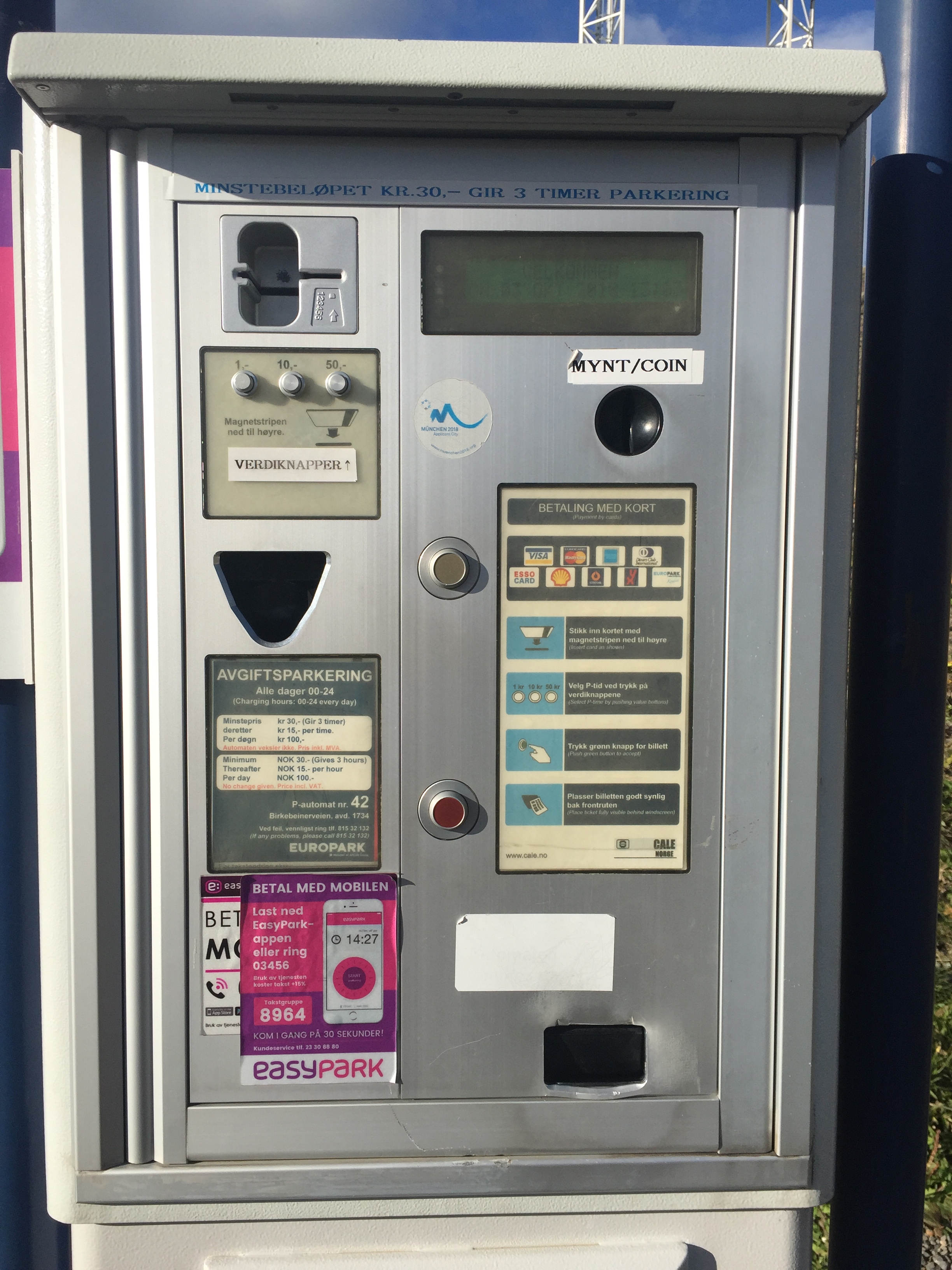進去跳台場地不用門票,但停車需要收費,停好車後需找到繳費機繳費,看不懂挪威文沒有關係,上面有圖示教學,照著做就好,不過男伴在我選時間的時候亂按,好像按到停車4小時吧,結果花了台幣200多塊,原本應該幾十塊可以解決的事情…