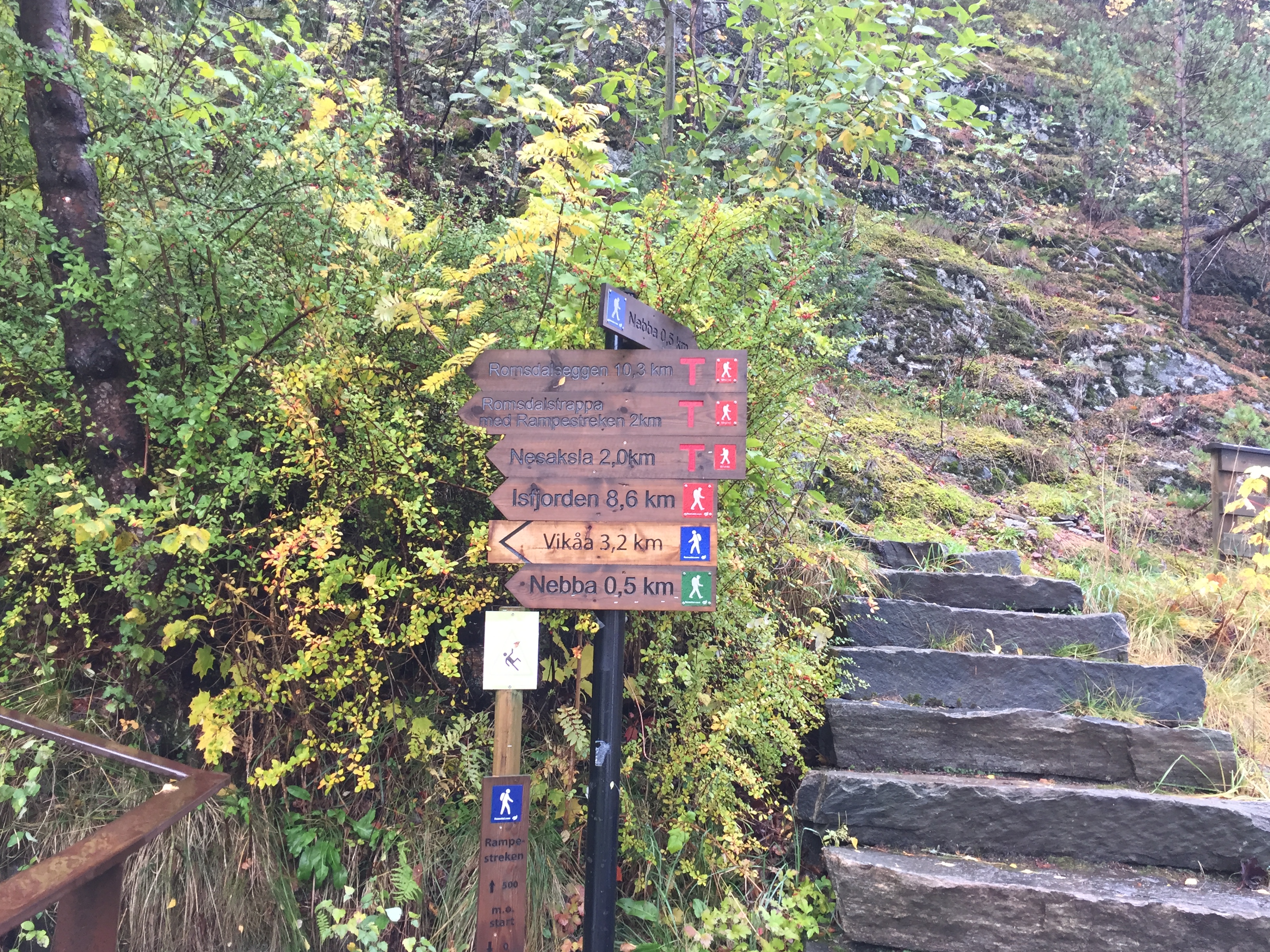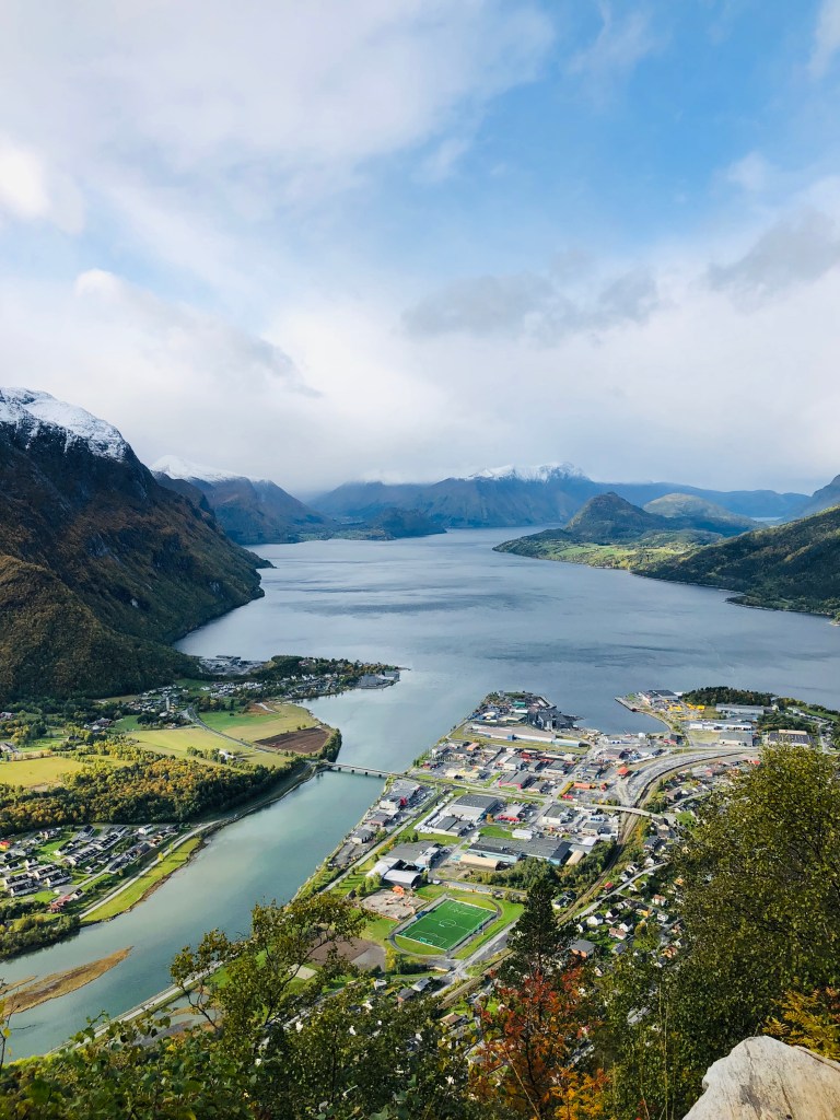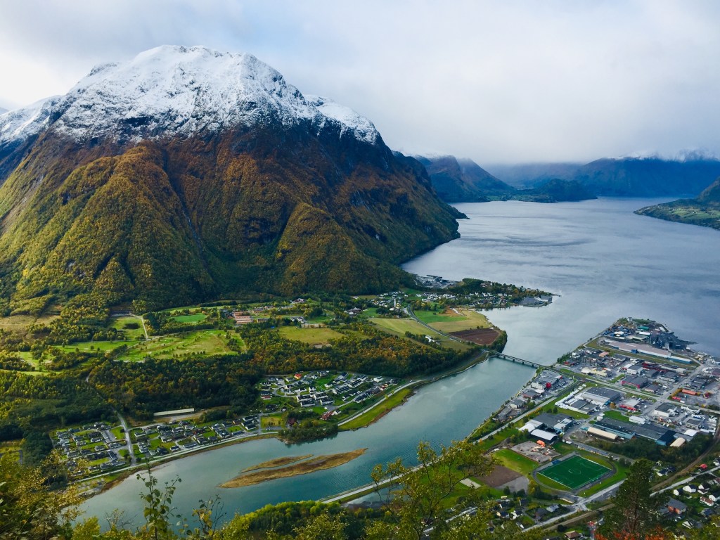 早上天氣很好,所以要把昨天沒走到的行程走完。於是我們繞回去要爬翁達爾斯內斯的半山腰觀景台。
