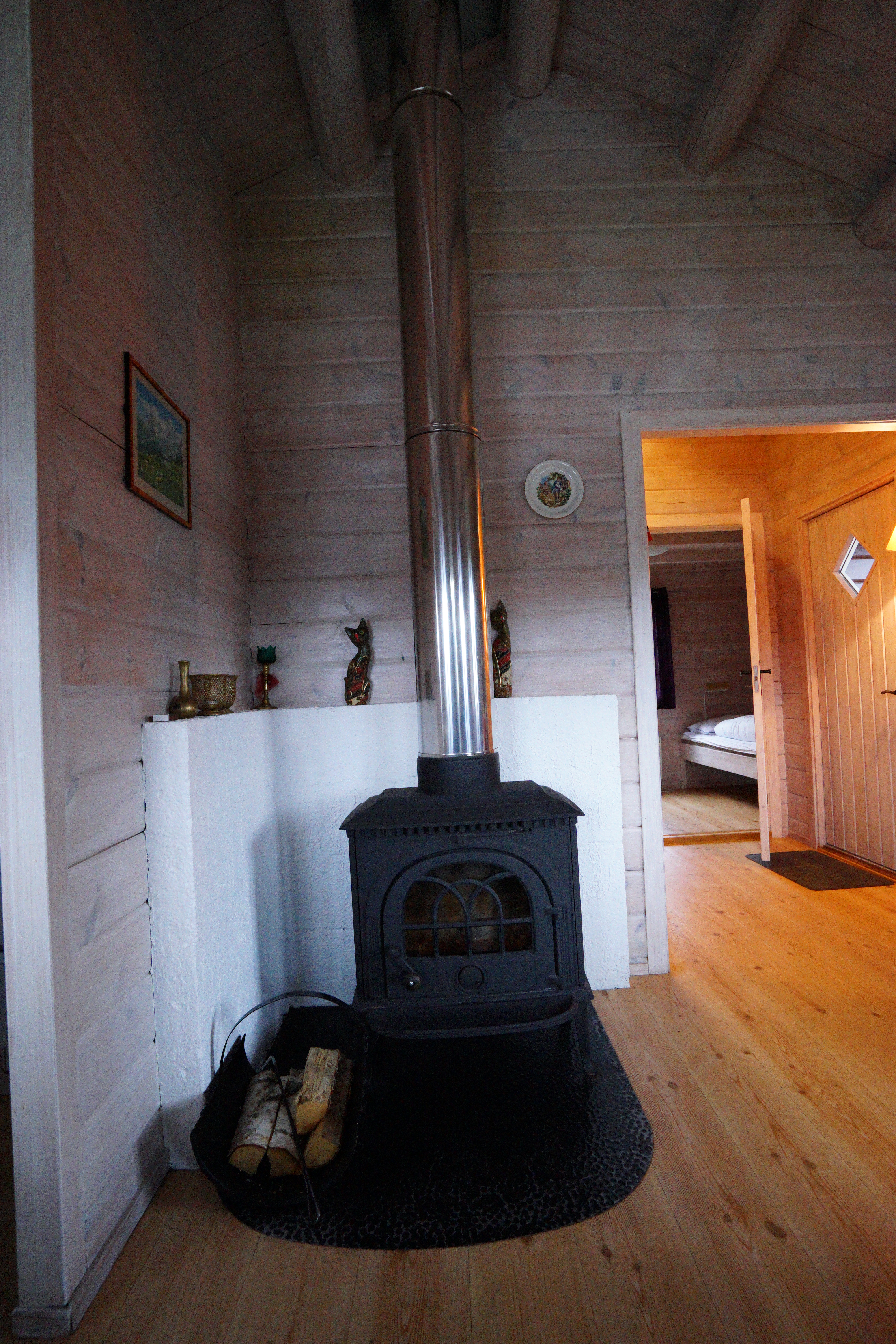 這間房子沒有暖氣,但有真的火爐,我們在爐子前面研究了很久都沒有辦法升起火,男伴下定決心一定要升火,於是找了屋主來幫我們,屋主拿了噴槍、汽油、報紙和更多的木頭來,才幫我們順利地升起火。