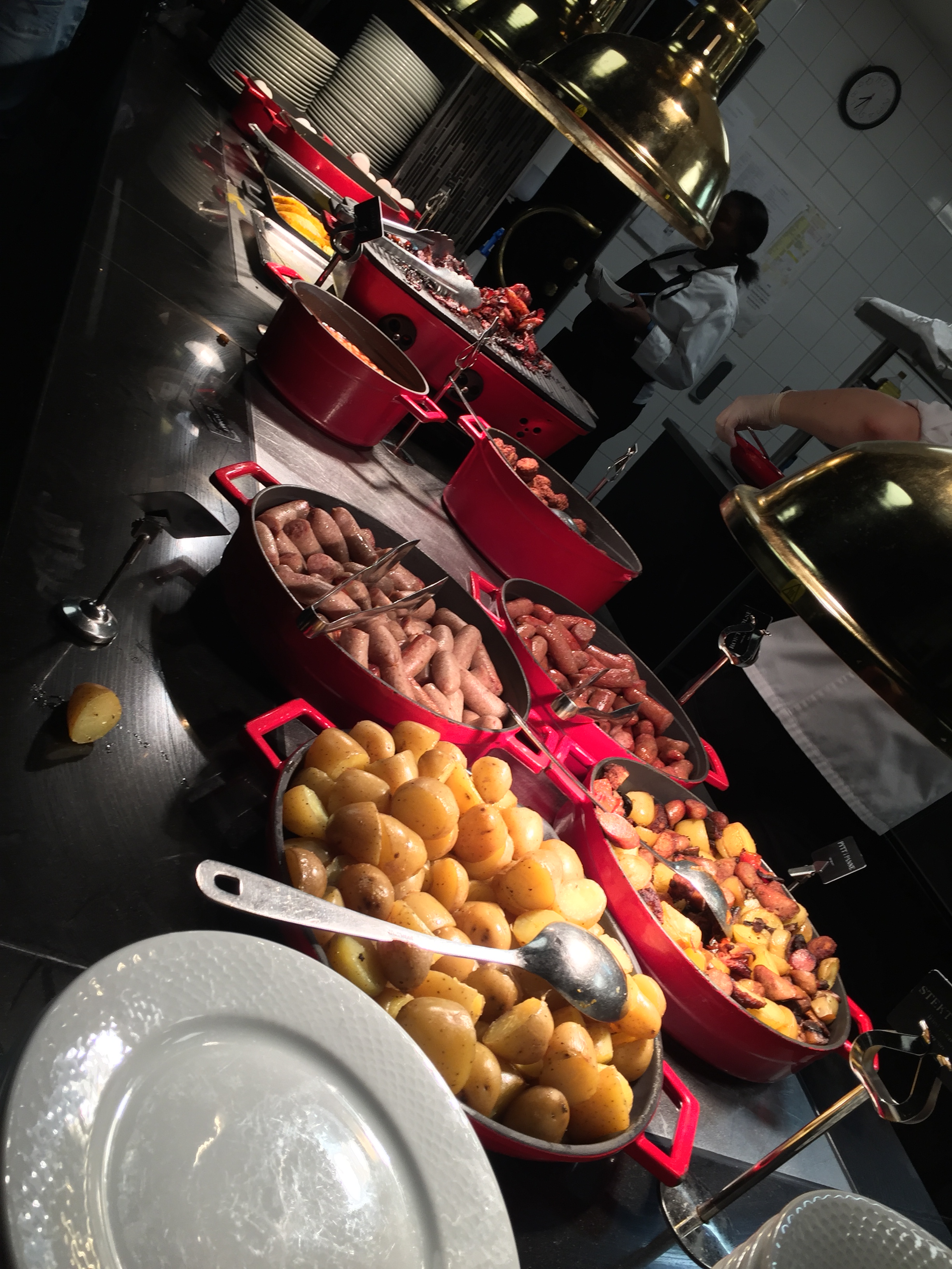 早餐的話供應的熱食就比較少了,剩下基本的麵包和蛋,還有小馬鈴薯。晚餐雖然食材種類不多,但看起來也還不錯,如果不太挑的話還是能吃飽的XD