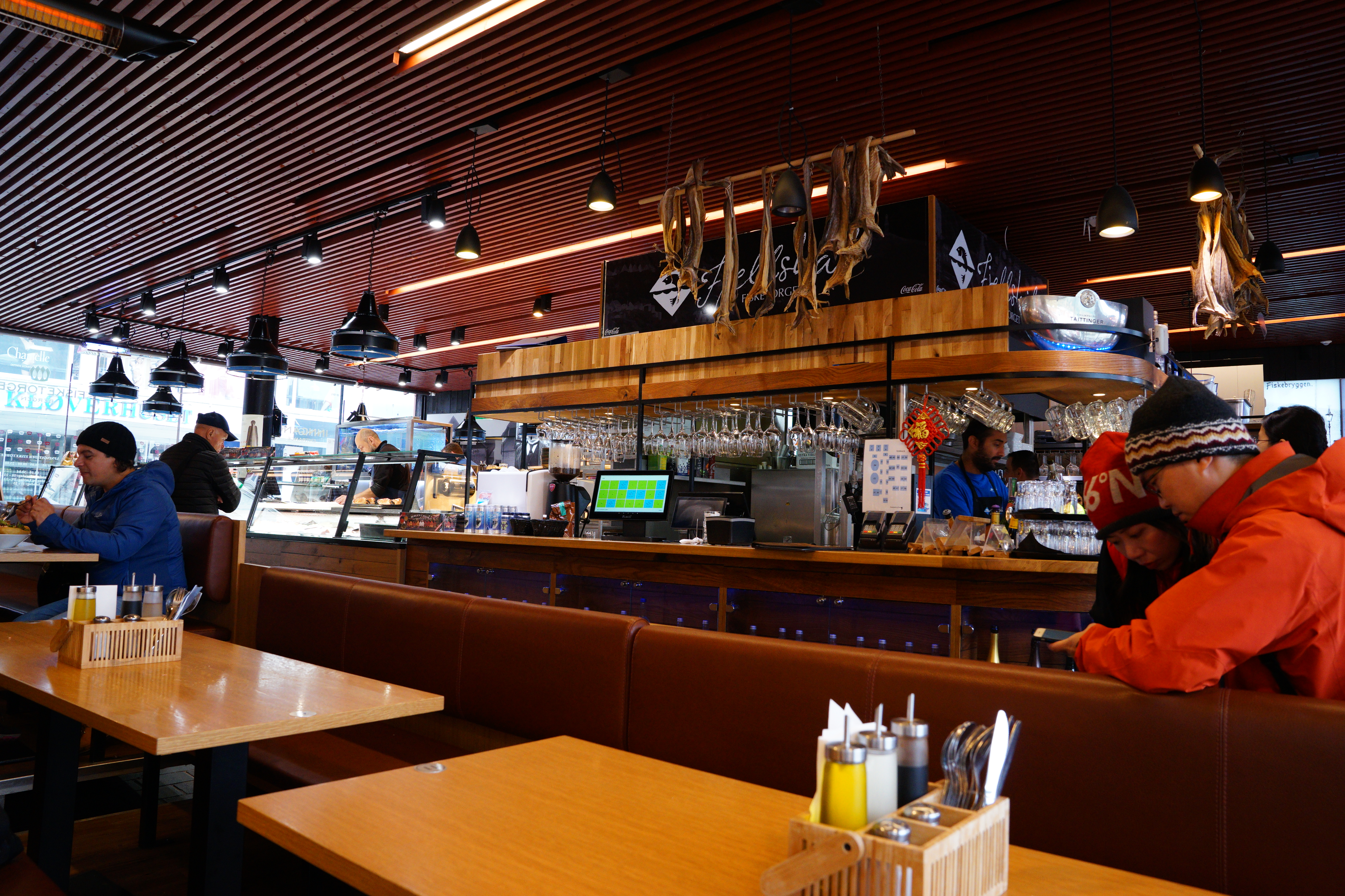 雖然人家說來魚市場就是被坑,但人家推薦的店家就在這阿~~只好來當個盤子觀光客體驗一下在市場喝魚湯吃海鮮。市場裡面很多華人,這大概是我來挪威之後聽到最多中文的一個地方,連攤販的服務生都有台灣人,聽到真的覺得蠻親切的。