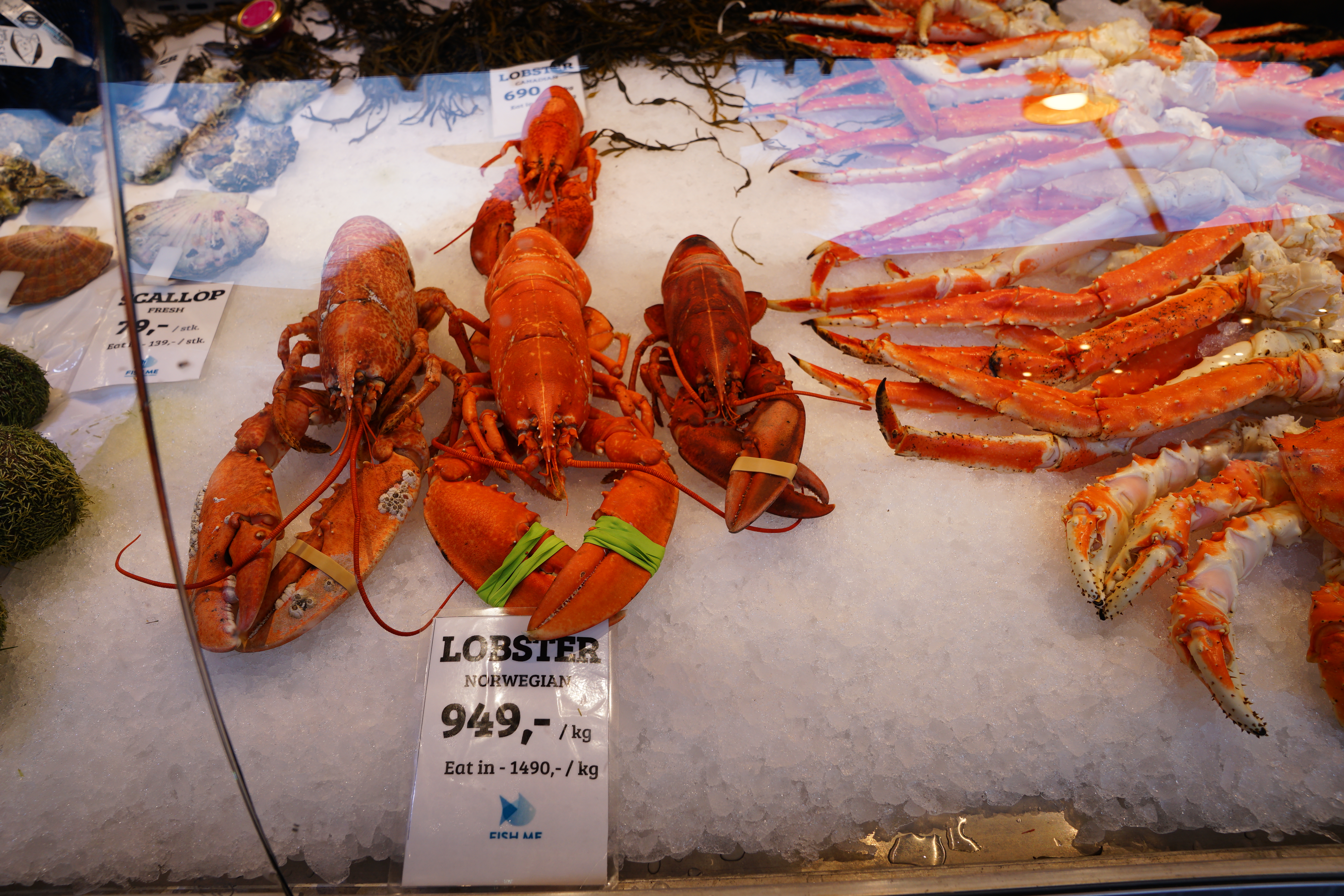 當然除了魚、螃蟹外,還少不了龍蝦,內用的話價格是1490 kr=5,400 TWD,在這吃一隻龍蝦要5400台幣,還是看看就好回台灣吃好了XD