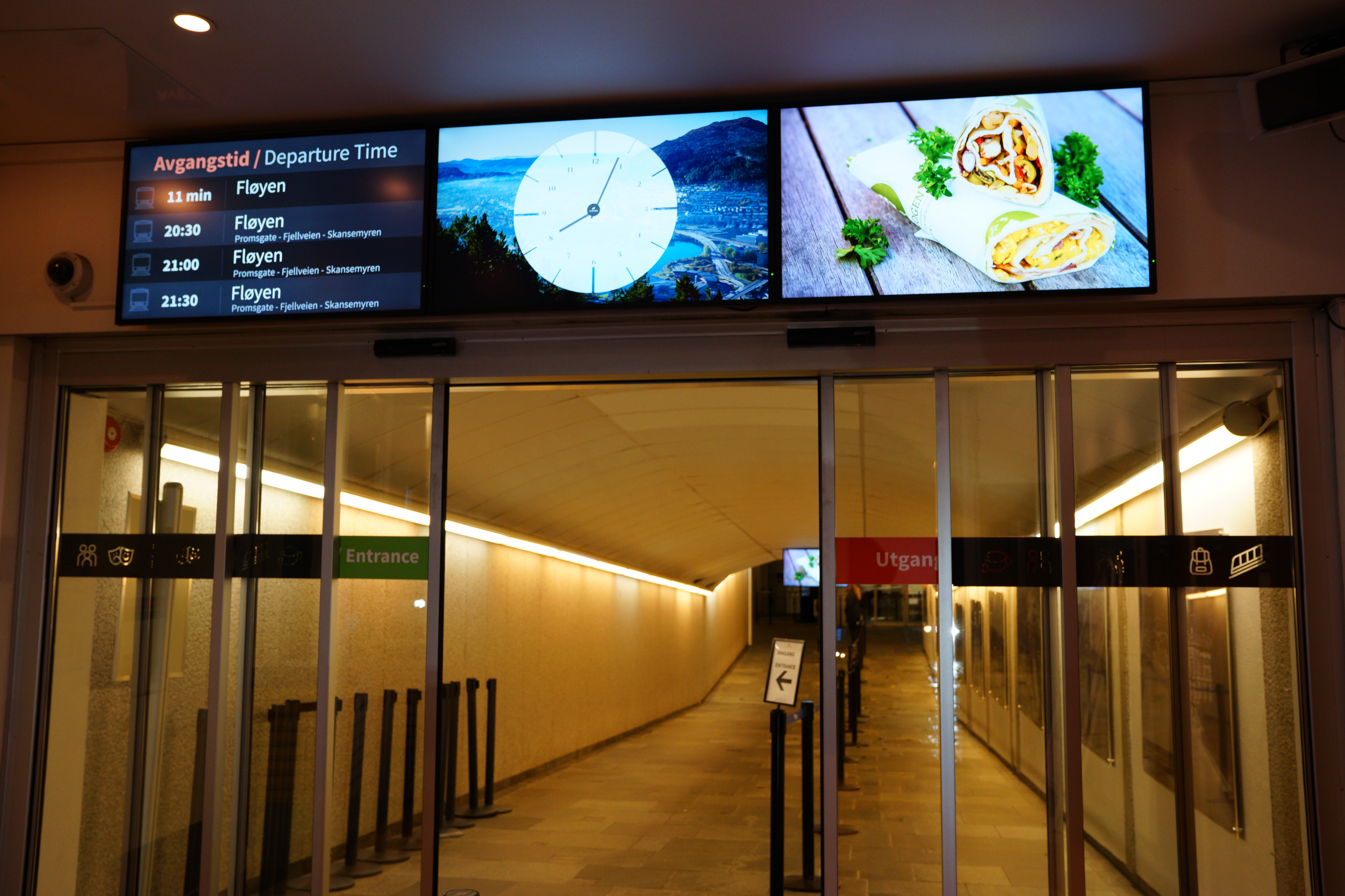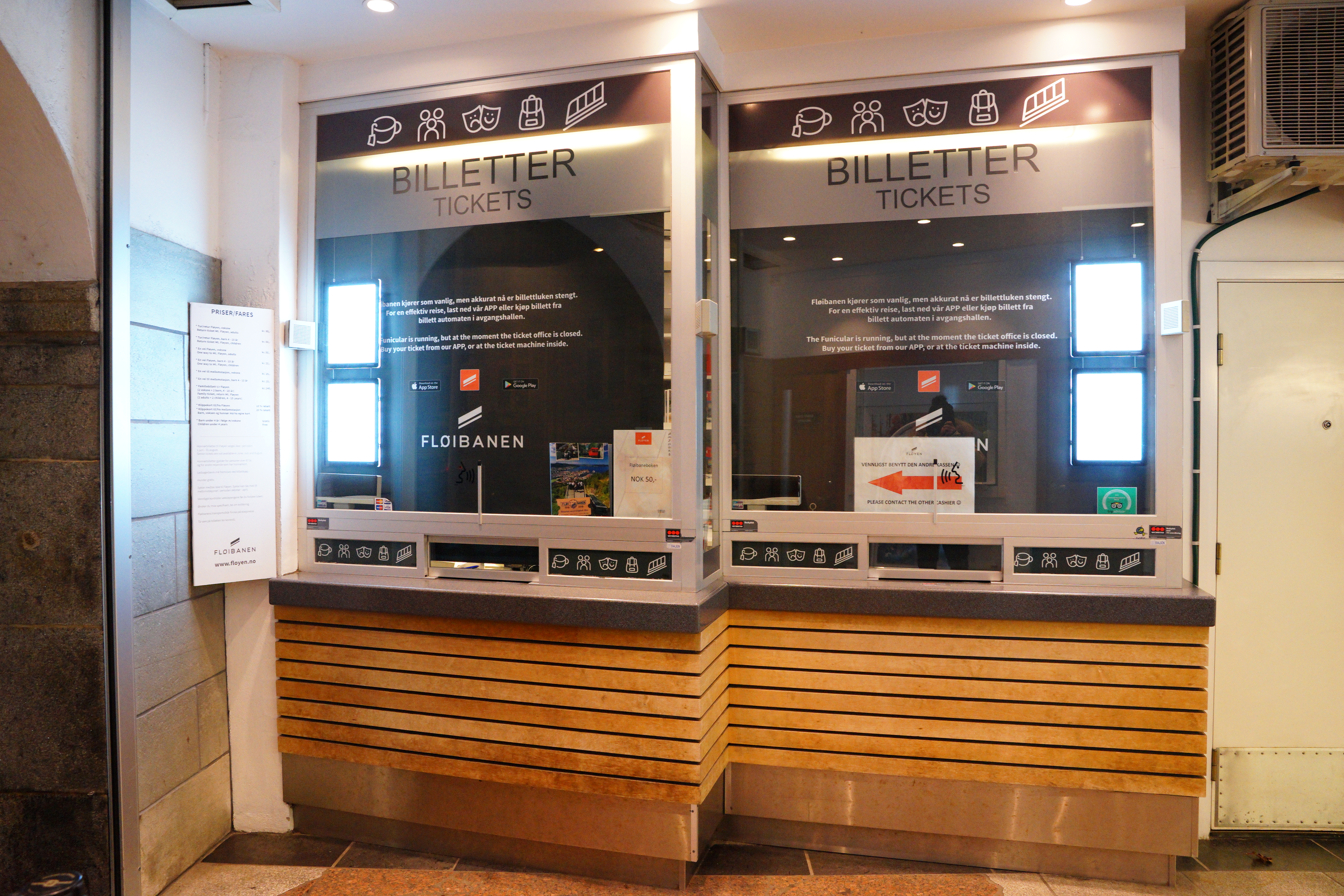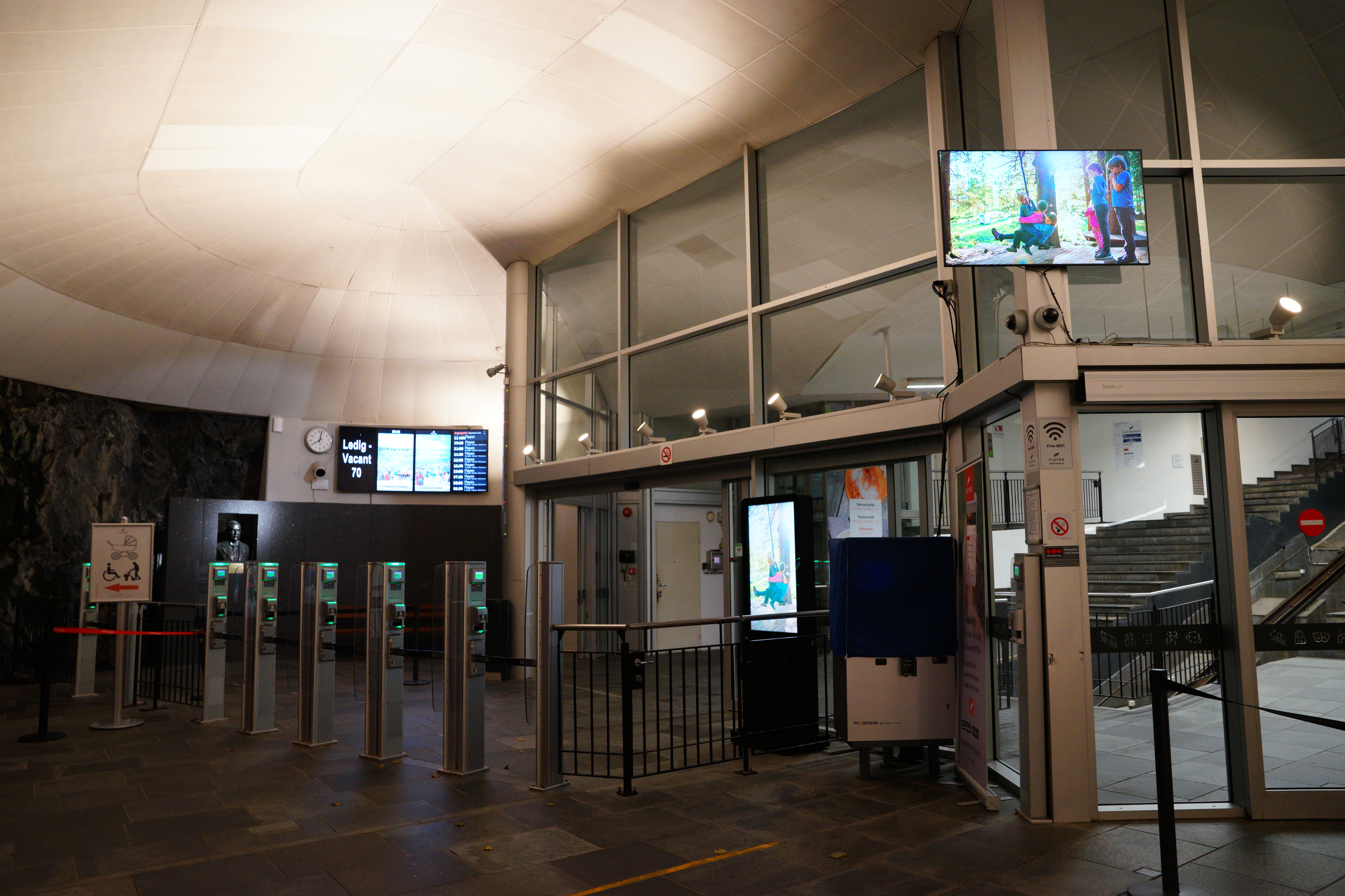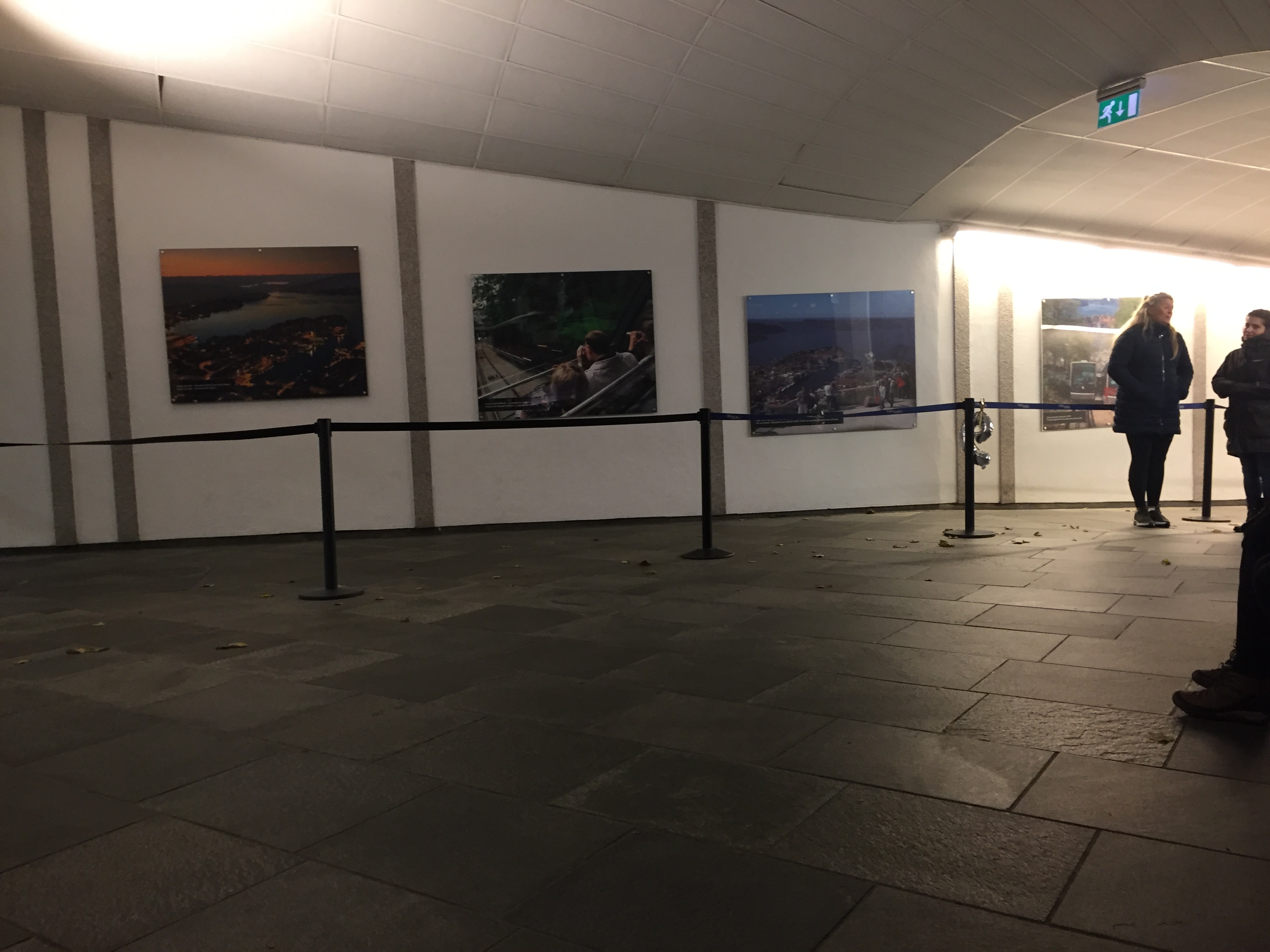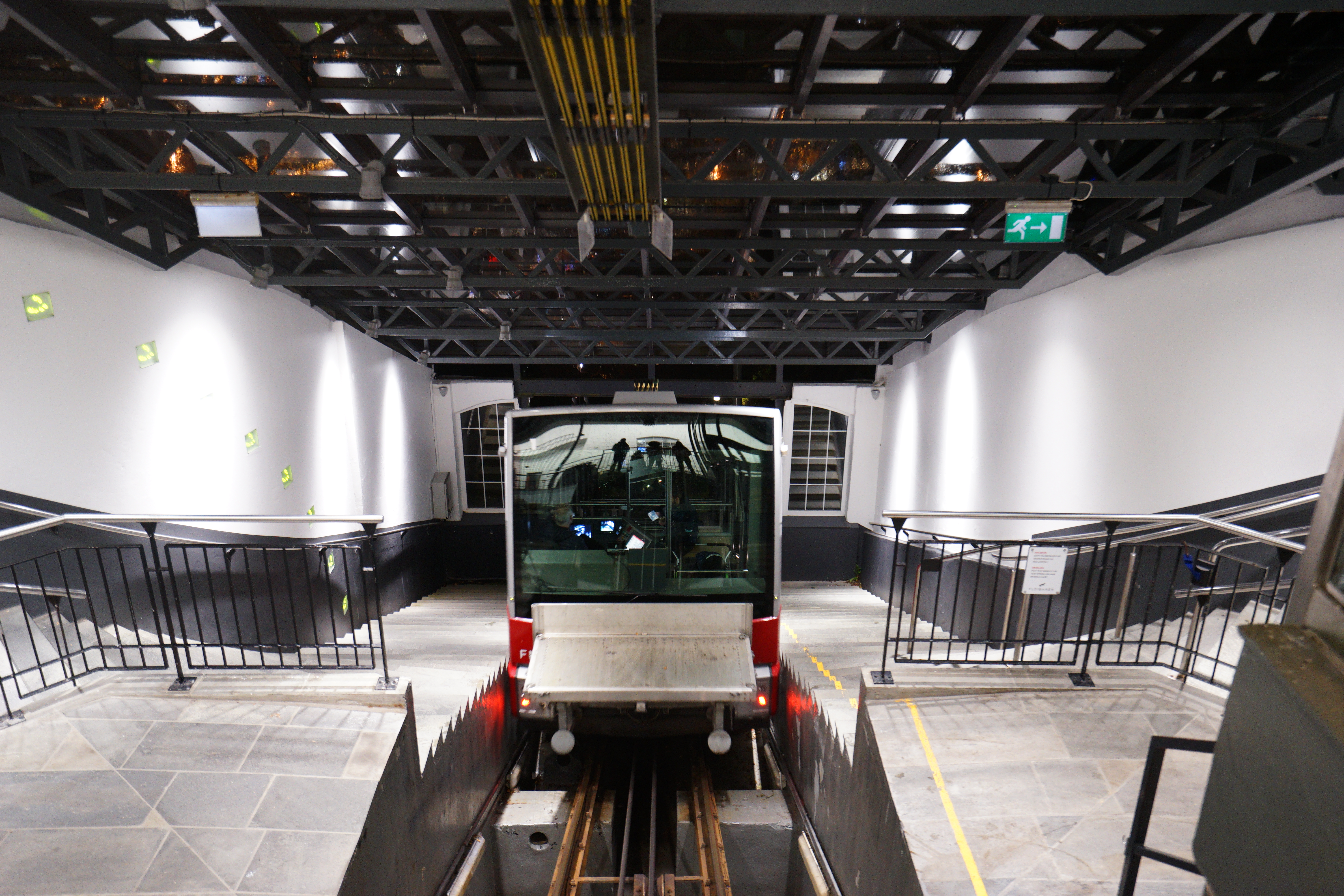 因為天氣很差加上是晚上,這天的人很少,進來後會看到牆上掛有弗洛伊恩山纜車的一系列照片。