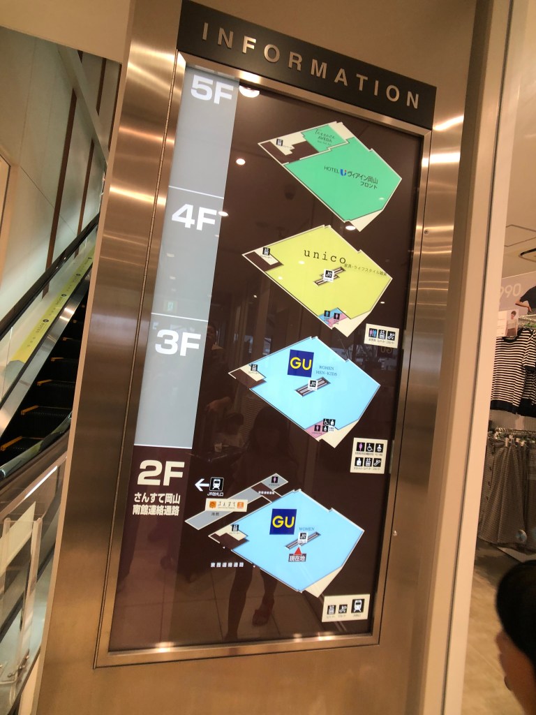 進去的地方是2F,2~3F是GU賣場,4F是賣家具的,4F之後要換搭電梯才能到5F 的Via inn岡山,旁邊有一家AVEDA,每次要進飯店前都能聞到超紓壓的味道。