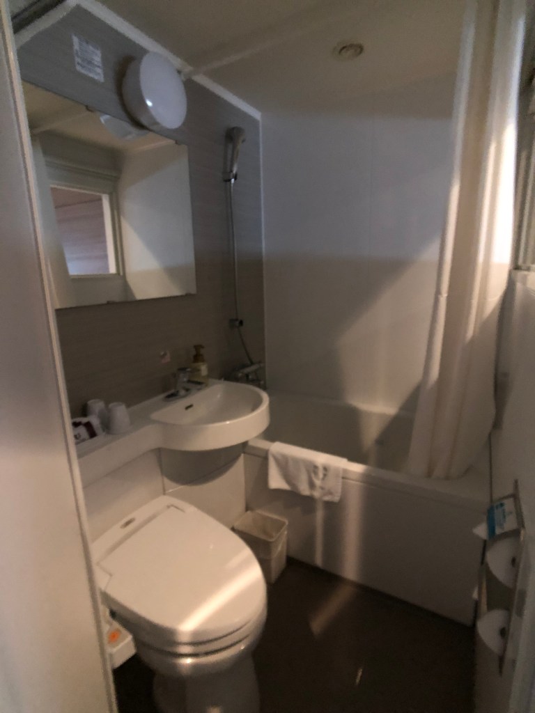 廁所我覺得不算太小,至少洗手台和蓮蓬頭不是共用的開關,洗沐用品是用POLA的用品,POLA真的很好用,尤其是洗手台上的幕斯那罐,我拿來洗臉後大推給男伴,好洗不緊繃,通常只用MAN’s Biore的他,竟然在洗完之後說如果家裡有擺的話,他會拿來使用的高評價,只好來逛蝦皮買個兩罐放家裡了(誤。