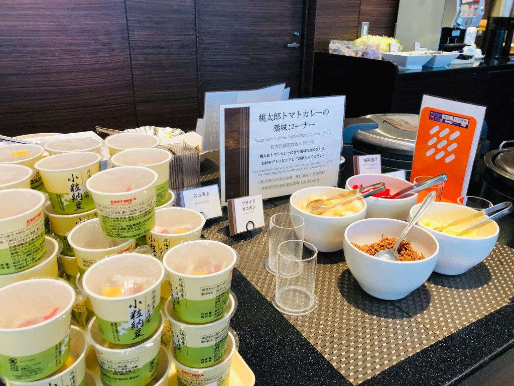 我想最特別的是這個,桃太郎咖哩和白飯!!一早就能吃咖哩夠特別吧~~但咖哩就只有咖哩醬,沒有料,吃起來偏甜,我只試了友人的一口飯。