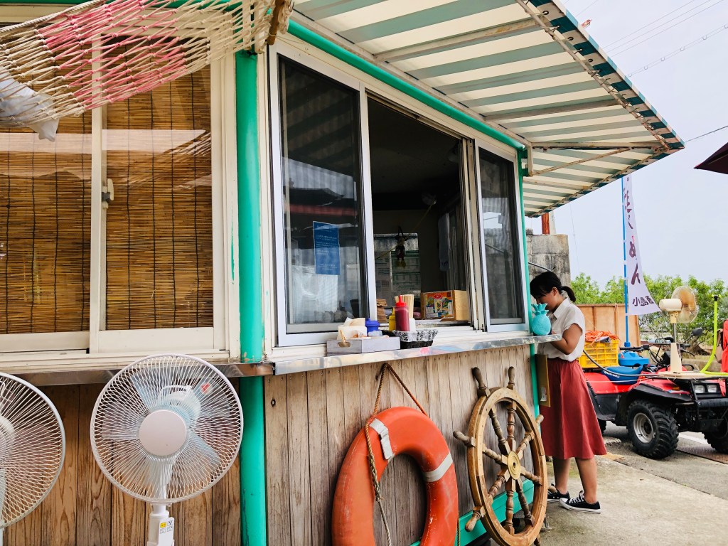 經過唐櫃港之後,附近有幾間小餐廳,我們找了一間雖然沒有冷氣但有兩台電扇看起來比較涼的小店吃午餐。