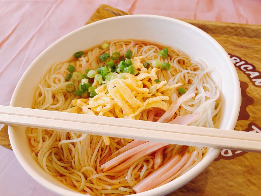 這裡賣的東西不多,但都好好吃!!上圖是一碗冷麵,麵體偏細,而且麵條有3種顏色-白色、淡粉色和淡綠色,配料很簡單就是蛋絲、蔥和火腿,因為冷麵的湯汁夠冷,所以麵體吃起來非常Q彈,在這種炎炎夏日完全透心涼,鹹度也很剛好,不會像拉麵一樣,整體口味偏清淡,卻很消暑。