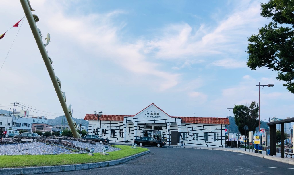 宇野站出來後往左直走。