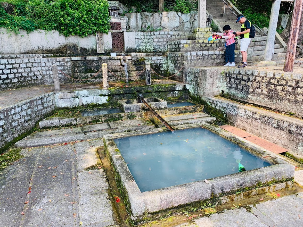 我們一路就從家浦港騎啊騎啊,沿路上坡騎到「唐櫃的清水」,這裡是日本真言宗的始祖空海大師(弘法大師)的遺跡。這邊有個休息亭的地方可稍作休息。孕婦真的體力變好差啊….只能騎最後面,還一直停下來喘,超虛。