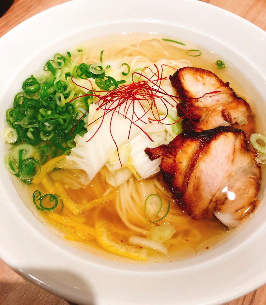 從照片就可以看出湯底的清澈,裡面的蔬菜也很多,整碗偏清淡口味卻又不失無聊,裡面加了一些柚子皮和許多的白菜,更能襯托出湯底的甜,東京也有著名的柚子拉麵,不過我沒吃過,這碗小豆島拉麵倒是可以品嚐柚子加入拉麵的感受。