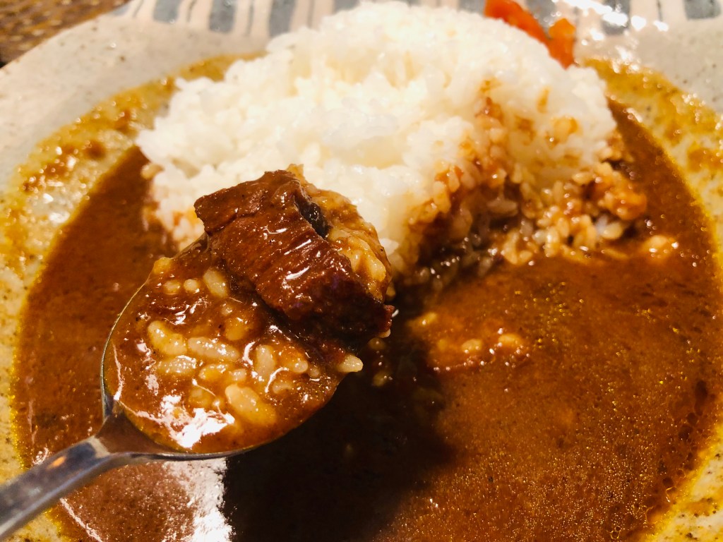 海鮮咖哩比較貴,一碗要1,480日圓不含稅,折合台幣大概450元左右。牛肉咖哩880日圓,折合台幣大概265元。