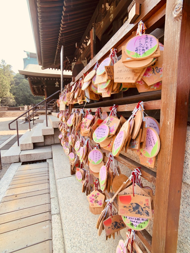 神社本殿左邊也有兩排讓民眾掛籤和繪馬。