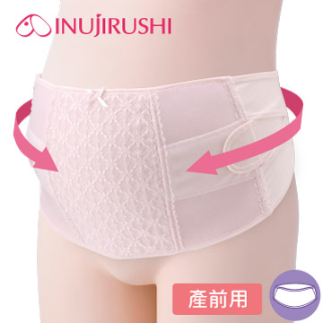 另外還有托腹帶,我也是在日本買的,犬印托腹帶,日本阿卡醬有各種托腹帶可以選擇,我每一個都有試過,然後選了最合身形的和最簡單的使用的買。