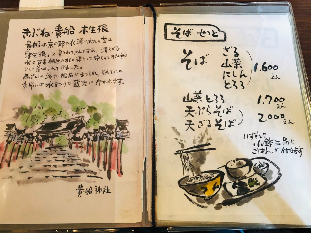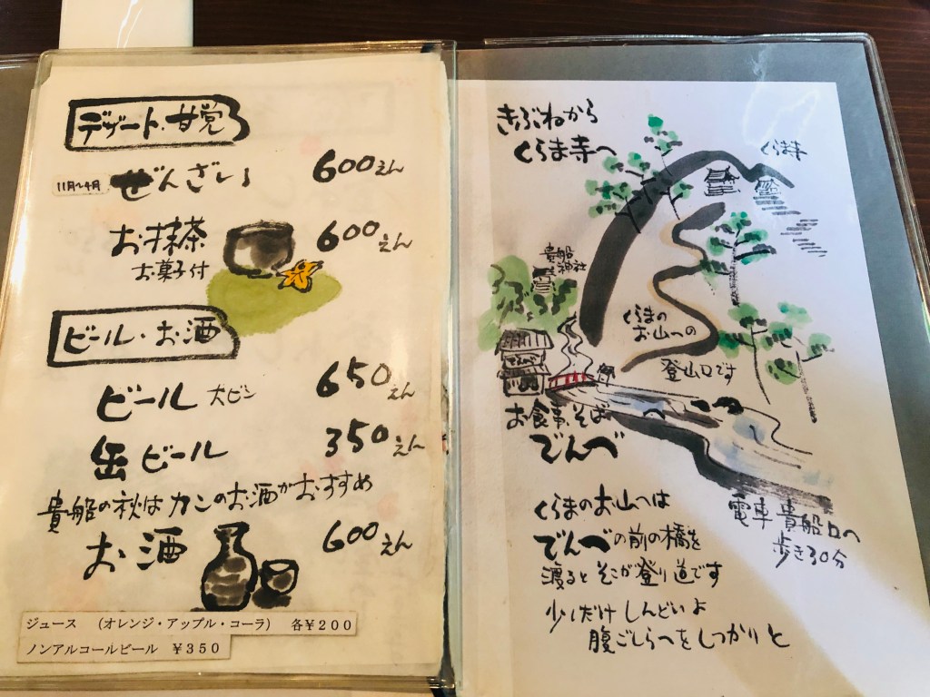 手繪菜單,價格如上,結果後來到鞍馬發現同樣的料理價格便宜很多………..有釜飯、蕎麥麵可以選。