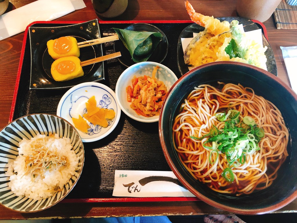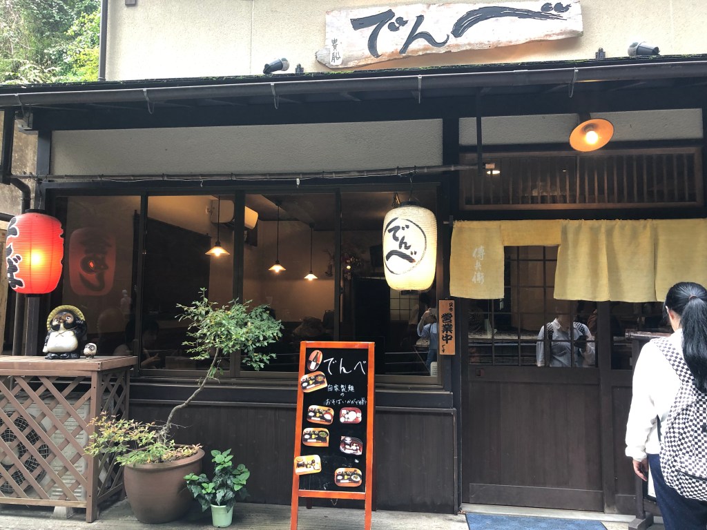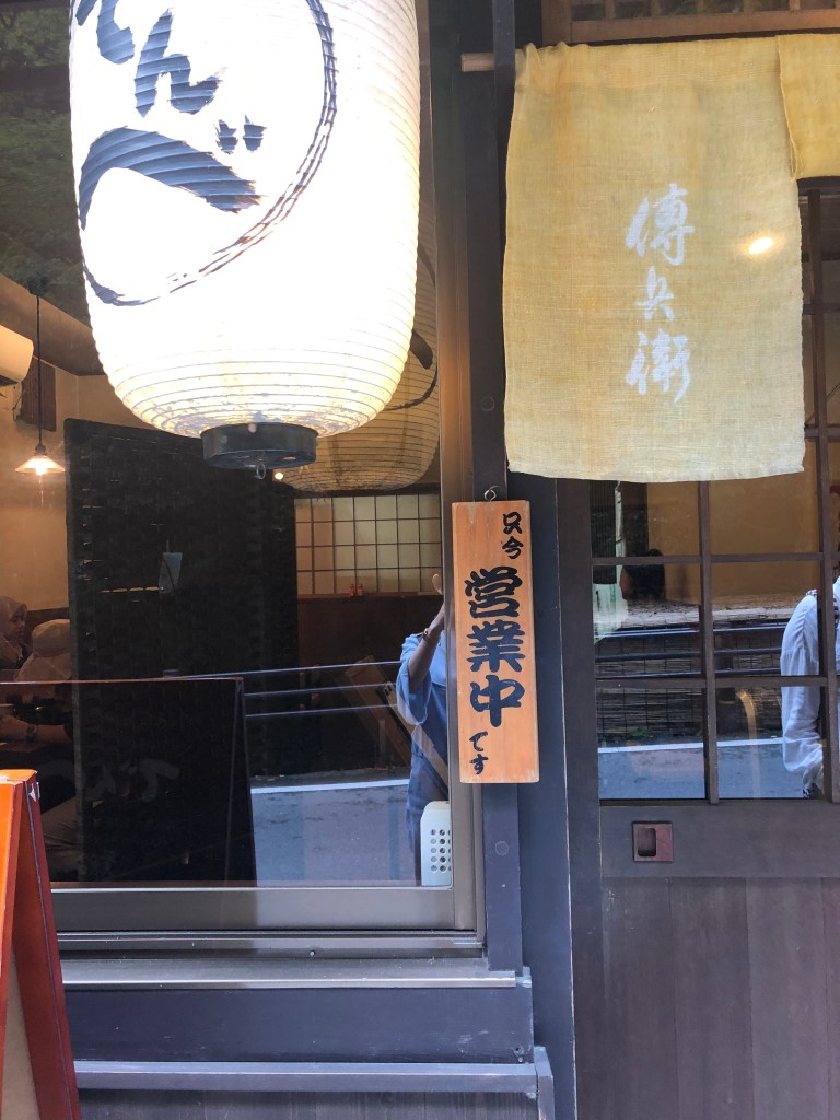 這次來到京都郊區-貴船,逛完也差不多中午了,怕去鞍馬更為偏僻沒東西吃,想說就在貴船隨意吃吃就好,本來想嘗試流水麵,可惜已過了季節,偏偏川床料理都貴爆,只好下山時選一家比較平價的餐廳來吃,因為能選擇的也不多,就選了這家-傳兵衛。