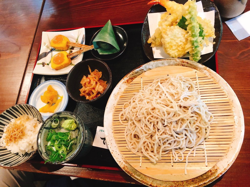 這是我點的天婦羅蕎麥麵SET。有飯、有麵、有些小菜。這間上菜有點慢,點完後到餐來至少有半小時久…..