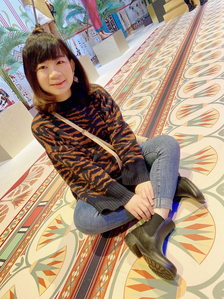 生之前最後一次出門去看埃及金字塔展,挑了一件H&M買的毛衣,再次證明顏色越對比,花紋越重,照片上肚子越小🤣,這天穿的褲子就是Angeliebe的,超瘦!!!!!!!