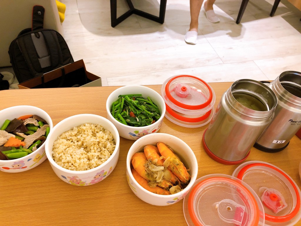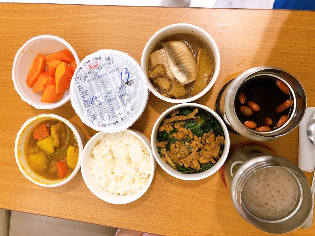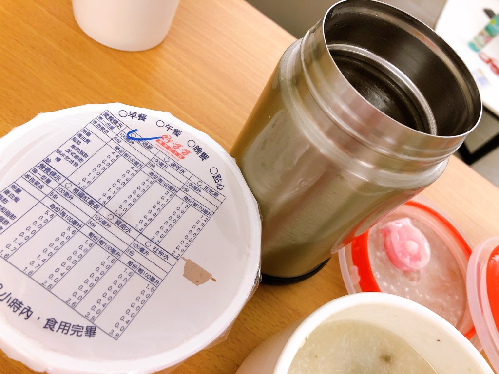 我訂的是三餐,每餐都會有茶、兩壺湯,餐的部分都是用兩層保溫袋裝,就算放一下吃還是熱熱的。