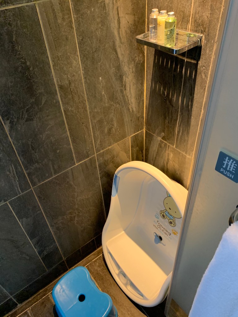有請飯店提供嬰兒澡盆和小椅子,我們有自備小獅王的浴網,雖然在外面,寶包也可以跟家裡一樣的洗澡方式。