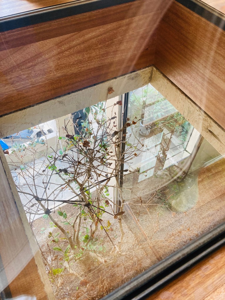 這次被安排在二樓的地方,竟然有個天井可以看下方的樹,很特別的設計。不知道為什麼坐在旁邊就好像特別能沉下心來放鬆,很神奇。但其實這個位置是2人座,後來因為我們人數比較多遂還是等其他人用餐完後再換去比較大的桌子用餐。