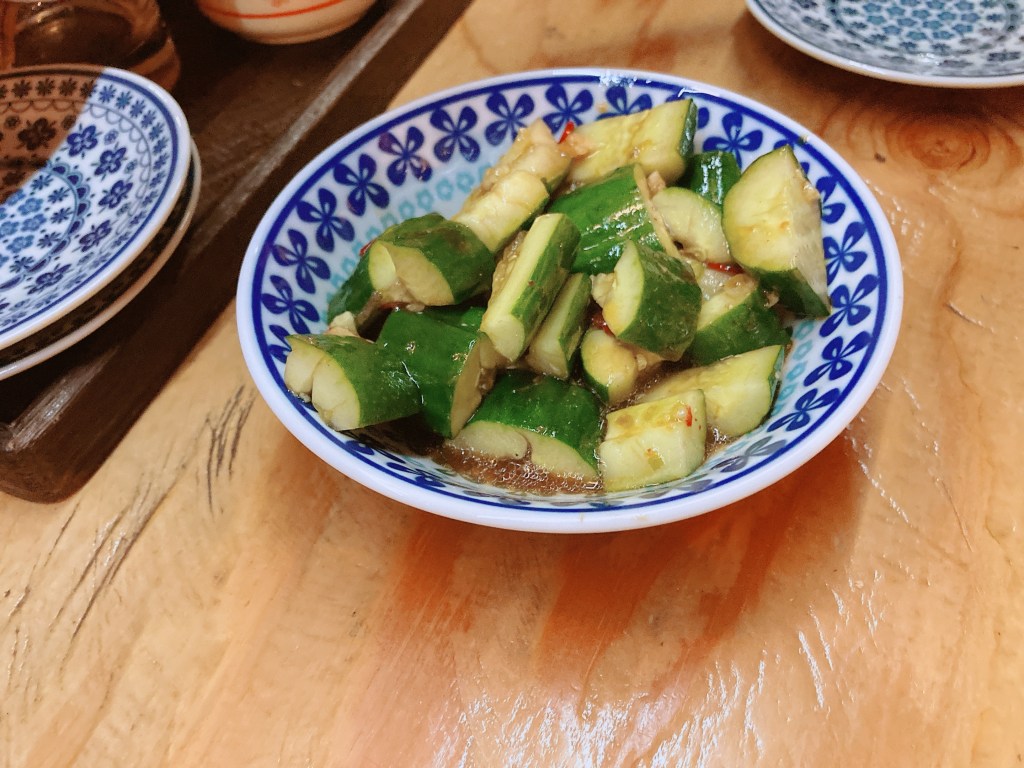 先來個我個人超愛的涼拌小黃瓜,清脆入味,小小辣椒點綴微微辣。