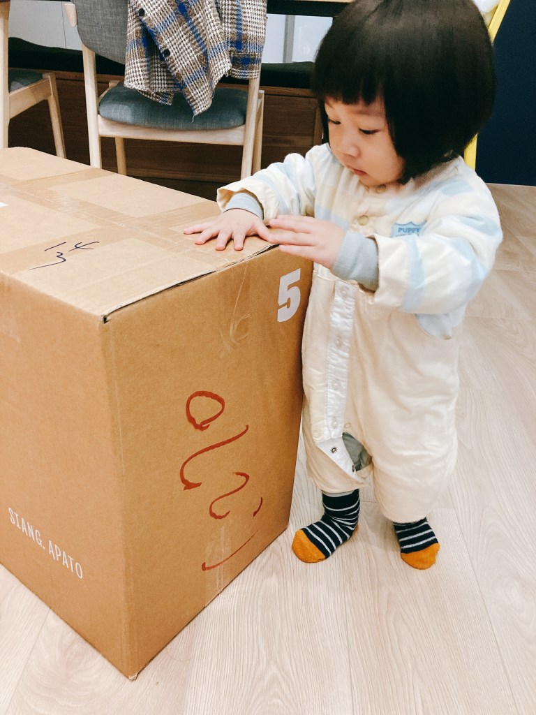 那就由我家小妹來幫忙開箱吧~看她多興奮地拍著紙箱。
