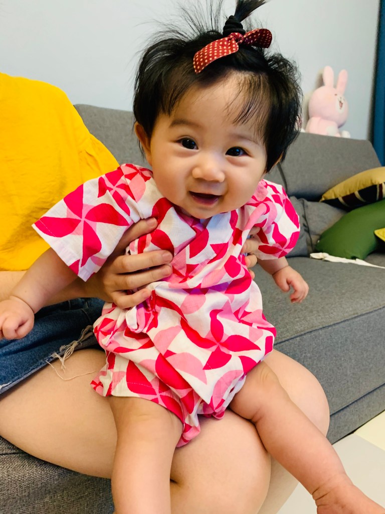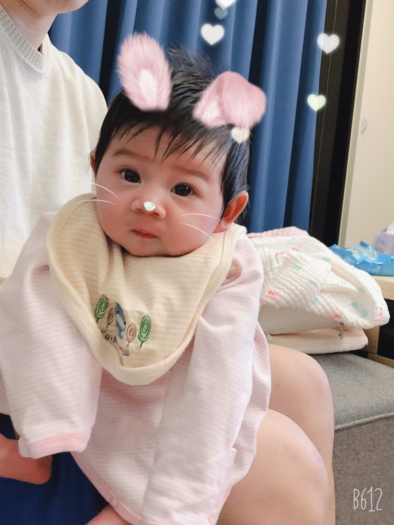 因為YUI 4個月之後口水流的很多,所以她的衣櫃裡至少有15條口水巾,有時候一天換2~3條也是常有的事,不過9個月之後已經停止流口水了,口水巾也就比較少用到了。