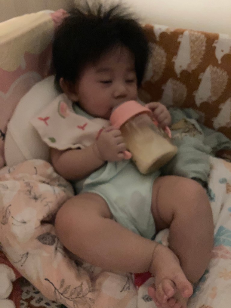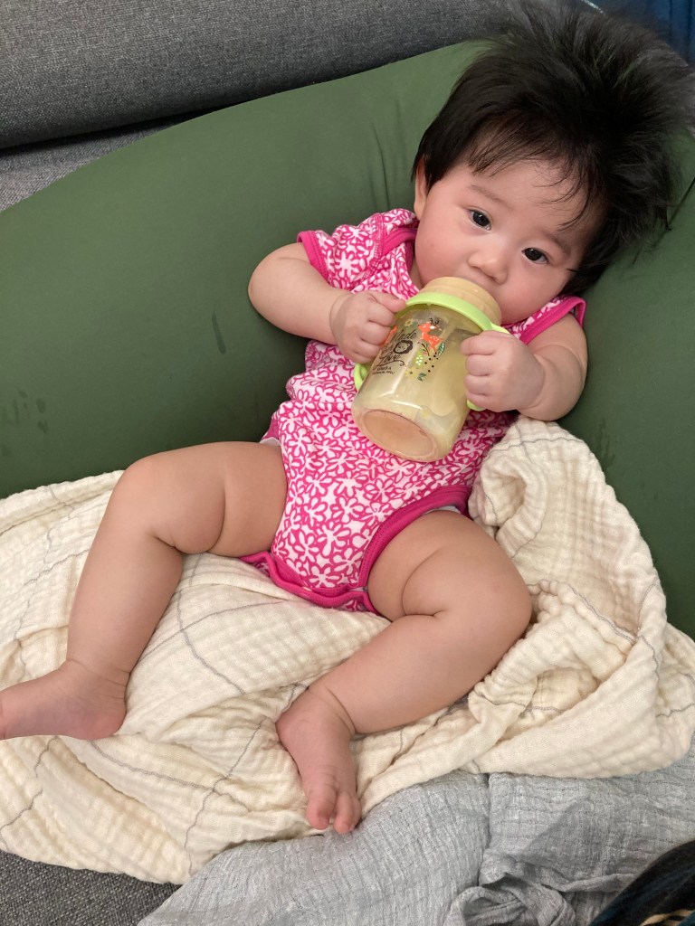 奶瓶要看小孩的吸允狀況選擇,一開始我們也是準備了很多廠牌的奶瓶,包含大家都推薦的貝親,但小孩怎麼吸都很容易會吸到流出來或是不好吸,就算換了小號的奶瓶頭也一樣,後來覺得還是小獅王最合她,所以就又再去買小獅王。一開始需要4個小時喝一次,所以奶瓶可以準備個6~7個,大一點喝奶的次數就會減少,像YUI目前一歲,一天就是4個奶瓶輪流用。