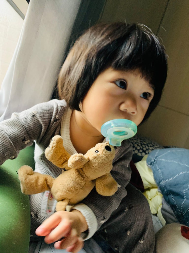 最常看到的應該是掛一隻龍蝦啦~但媽媽不喜歡龍蝦,所以改買小狗。很多人看到會問怎麼掛一隻娃娃,感覺很重。但其實那隻娃娃很輕,當初買的時候還想說「也太輕,怎麼可能會吐不掉」。實際上,奶嘴還是會被吐掉,只是媽媽半夜比較好找奶嘴🤣🤣🤣🤣有一些部落客說可以頂住床邊就會卡很緊之類的,我試了還是沒用,到YUI現在長大我覺得掛這個也就還是一個「找奶嘴比較好找,奶嘴不會弄丟」的功能🤣。