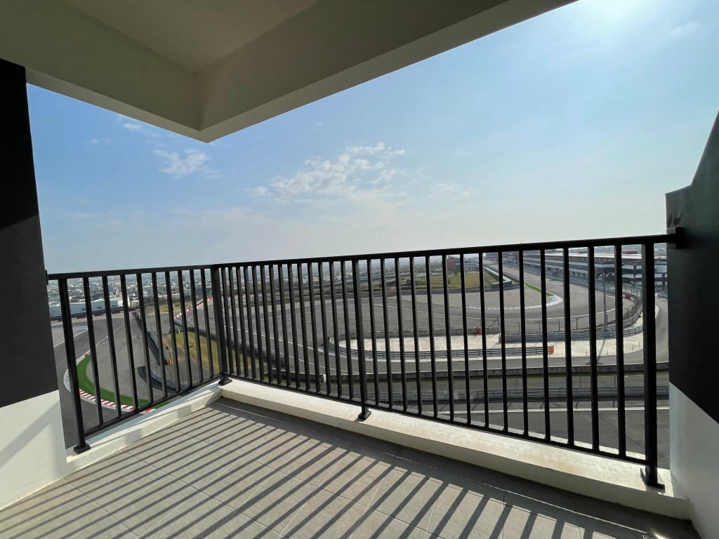 陽台出去看到的賽道,真的很棒!!!但是地板蠻髒的,需要穿拖鞋或是鞋子進出。