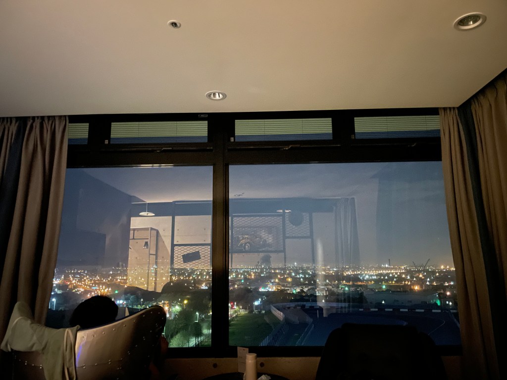 晚上從房間拍出去的賽道+夜景,錢花得很值得XD(不得不說 I phone 12三顆鏡頭夜景能力真的很棒!!)