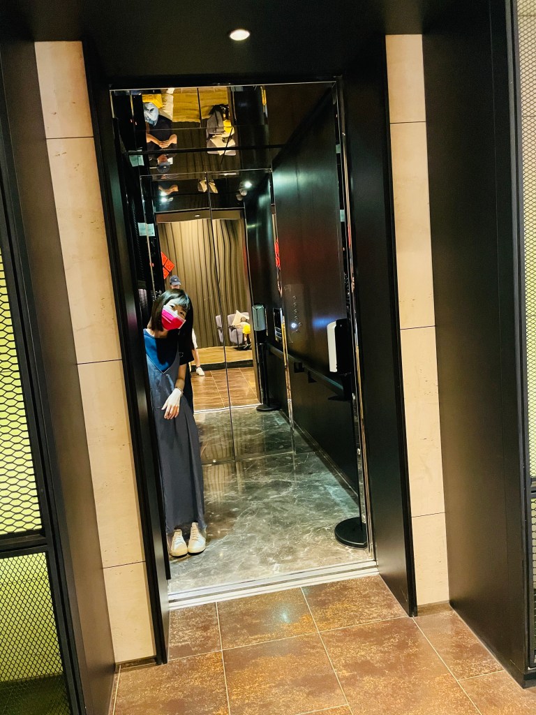 電梯裡面很大,還有全身鏡可以照一下鏡子。