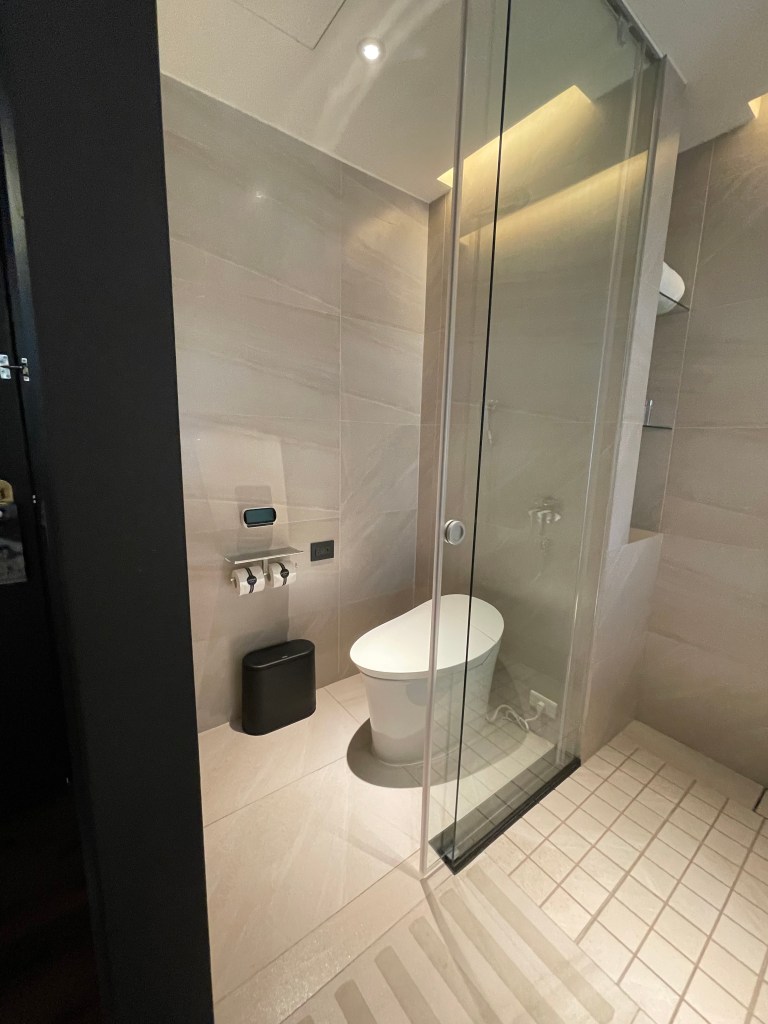 馬桶旁邊還有插座,和一個小檯面,讓人可以一邊划手機一邊上廁所,還不用擔心沒電😆