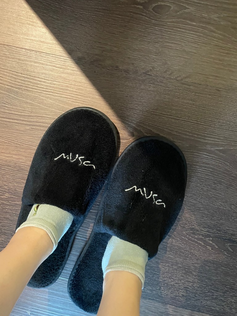 我真的要稱讚飯店提供的拖鞋!舒服到一個不想脫,毛茸茸的觸感超級棒。