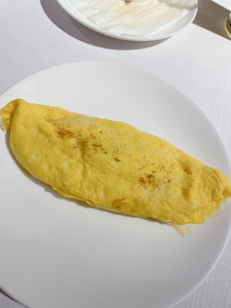 最後再來一份蛋料理。我是點歐姆蛋,裡面有包些菇類、蔬菜,整體算清淡,需要搭配桌上的胡椒。但其實吃到這裡我已經飽到不行。