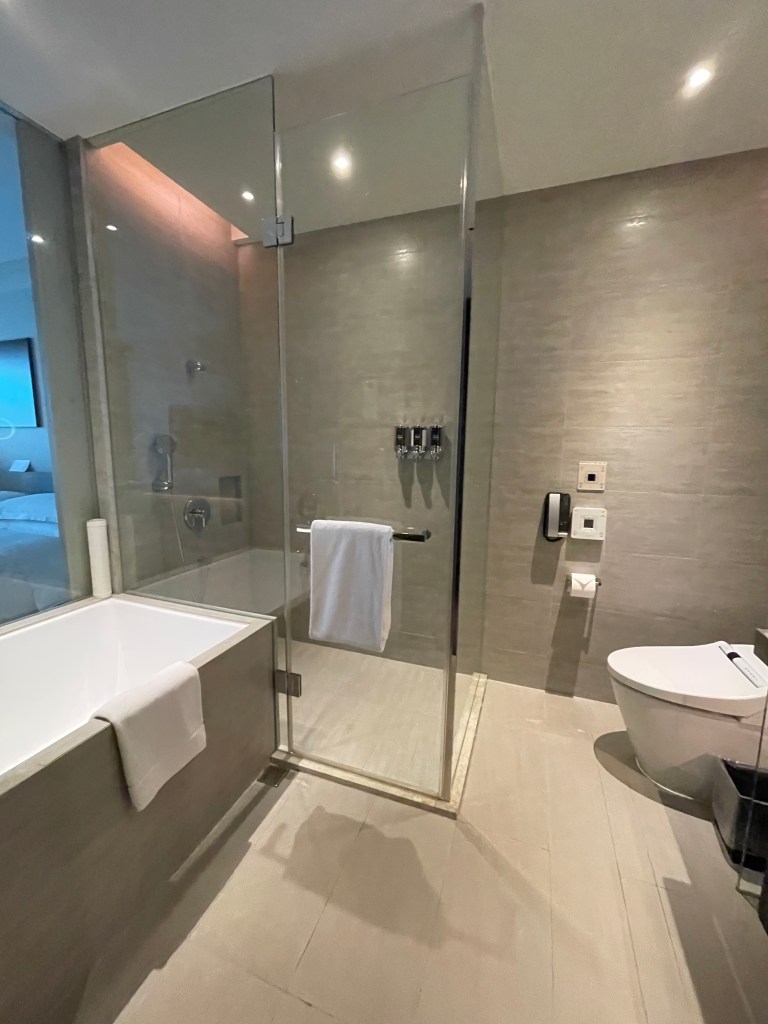 浴室蠻大也蠻舒服的,最近入住台北的飯店衛浴部分都設計得很不錯,很大很舒服,覺得很加分。