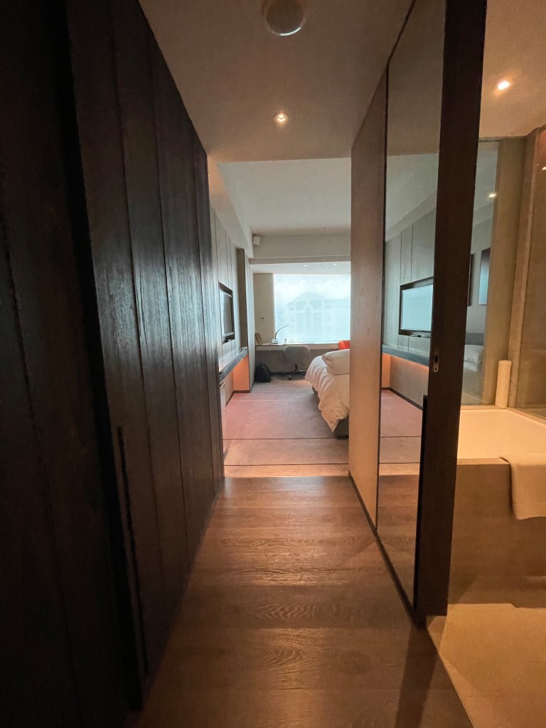 這次住的是精緻客房,一進門就有長長的廊道。左邊是隱藏式衣櫃,右邊是浴室。
