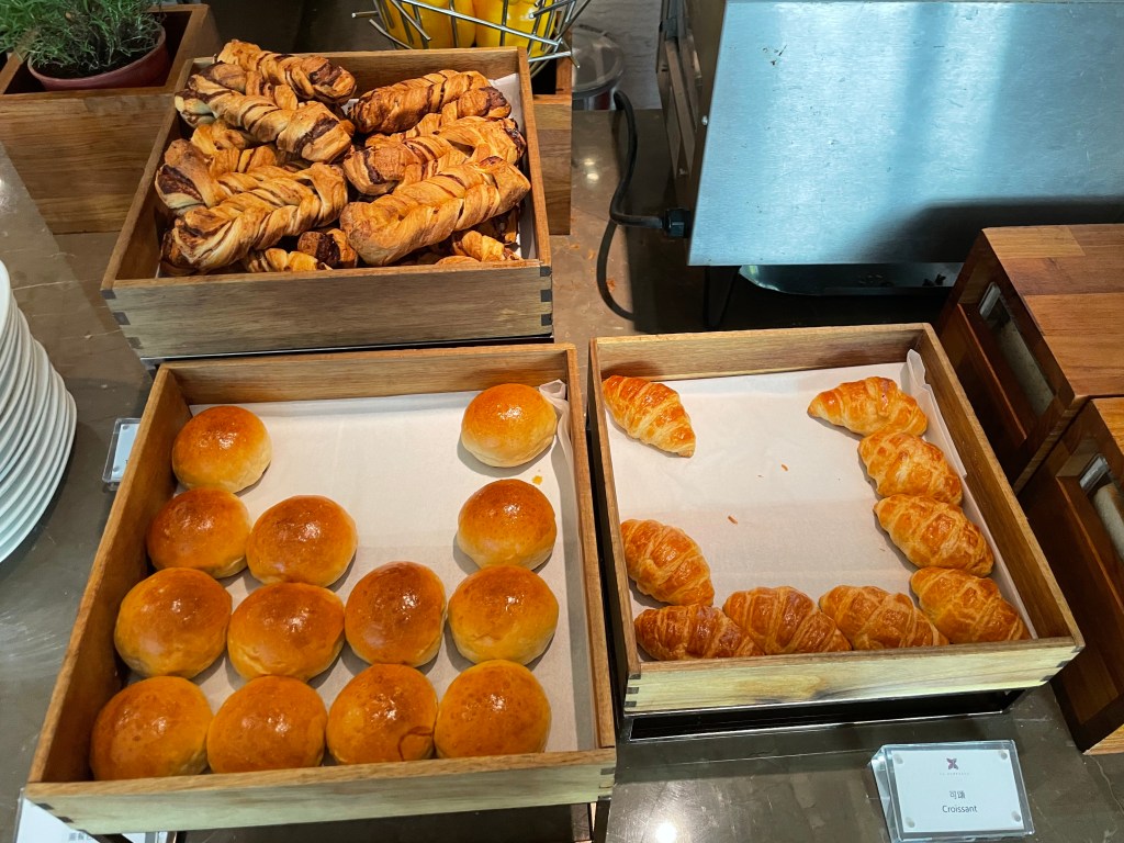游完泳回房間整理一下去吃早餐啦~早餐是Buffet形式,選擇還蠻多的。一旁有各種麵包和果醬。